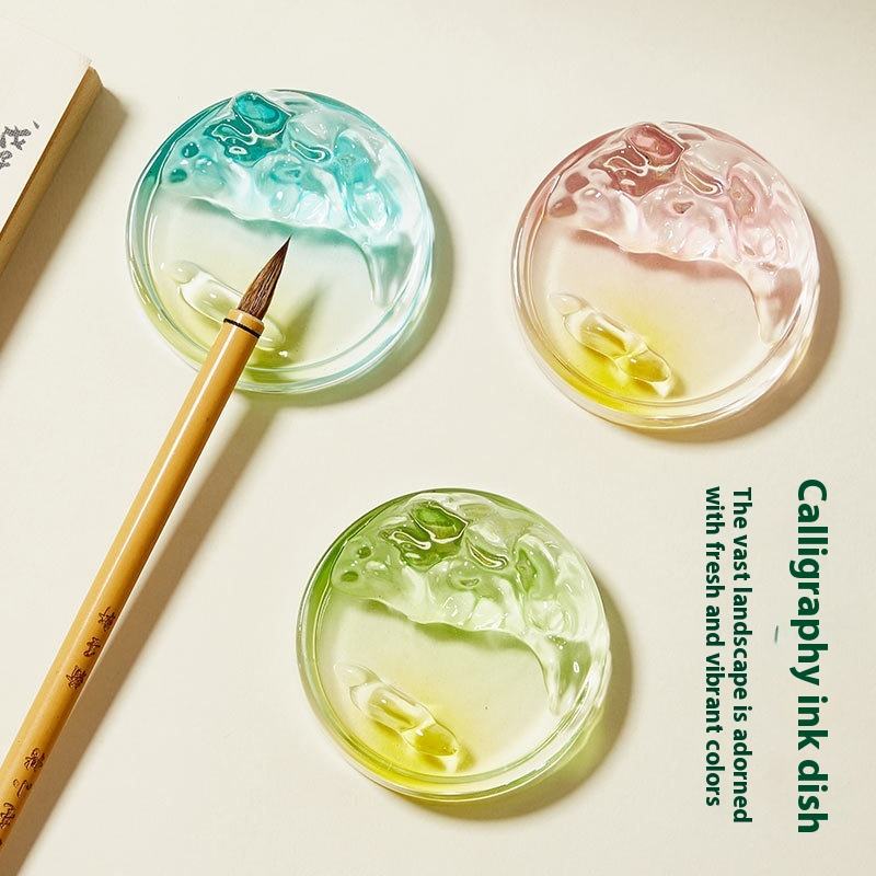Support de rangement pour stylos en verre coloré JINGCHEN avec coupelle à encre 10x10x10cm pour la calligraphie, les pinceaux de peinture chinoise - Essentiel pour les fournitures artistiques