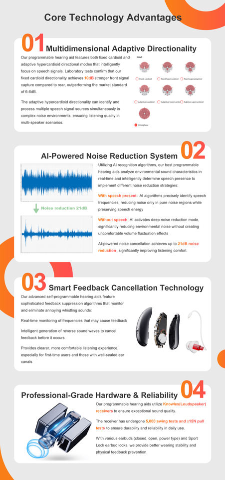Rechargeable, Réglable, Traitement numérique, Réduction du bruit, Écologique, Son super clairDispositif