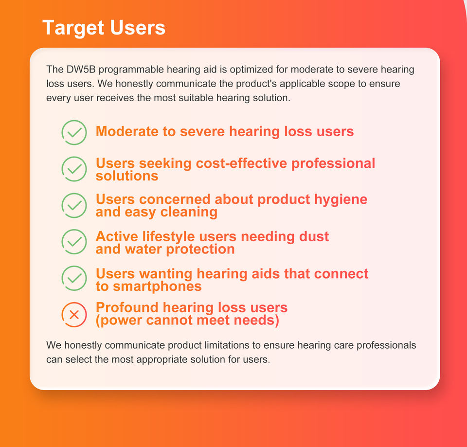 Soins de santé, Réduction de bruit, Personnes âgées, Perte auditive légère à modérée, Malentendants, Programmateur pour prothèses auditives, Améliorer l'auditionApplication