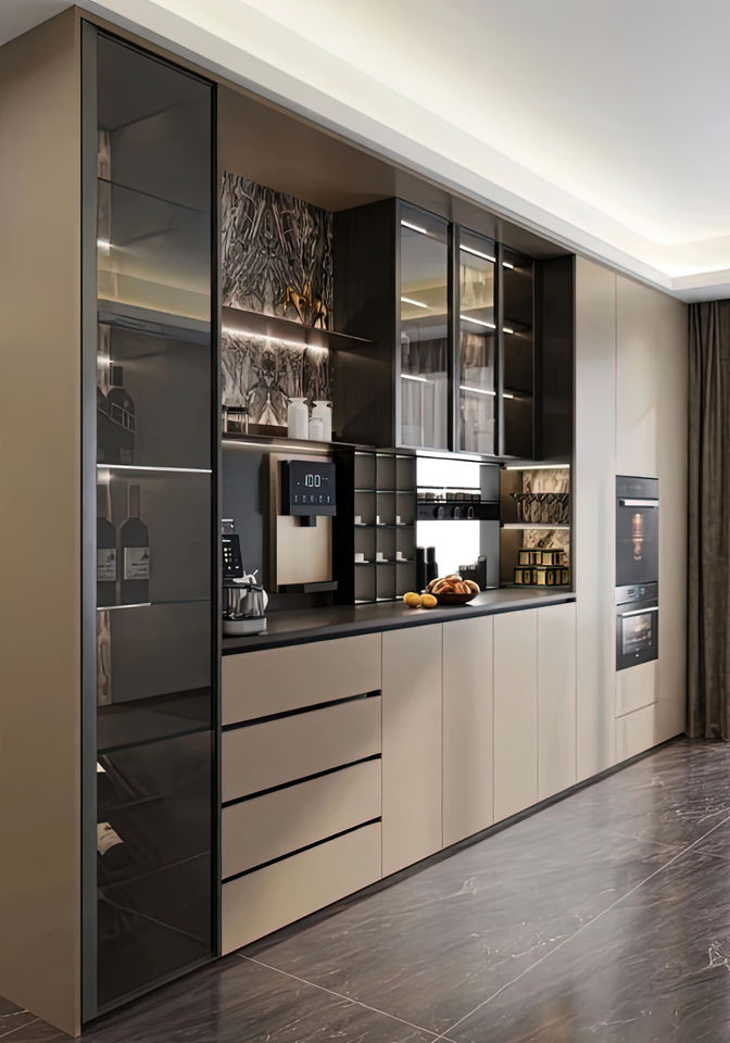 JINGSHUN Modern Glass Wine Cabinet Wood Custom Sideboard for Living Room Display Cabinet Full House Customization Large Capacity