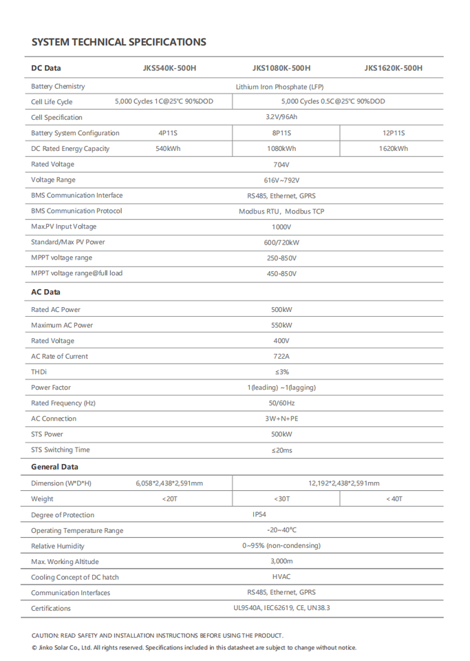 Nom du produit::JKS1100K-500H Stockage d'énergie industriel et commercial
