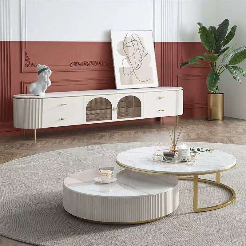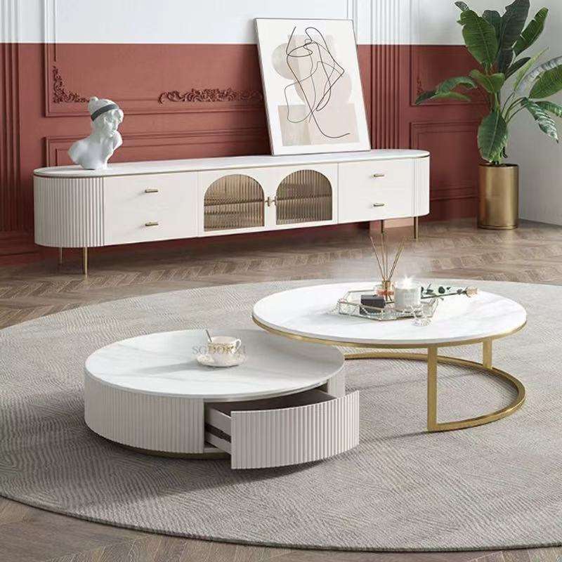 JINS Table basse de luxe de style moderne et supports de télévision en bois blanc avec support de tiroir meubles de salon de meuble de télévision