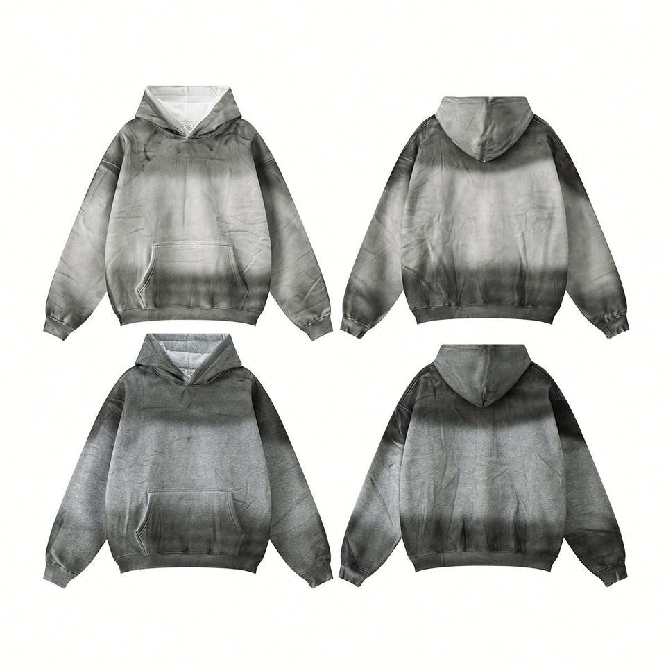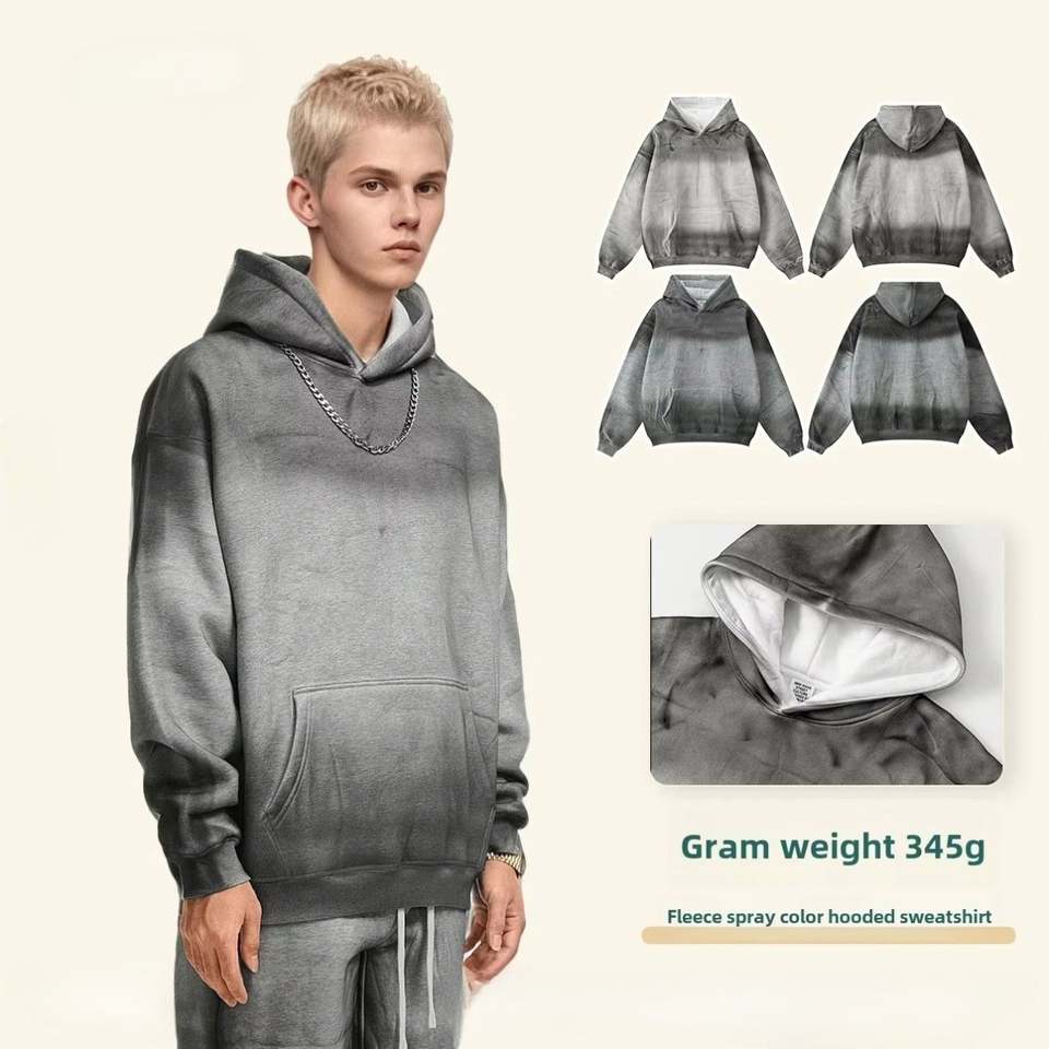 JISHI 2025 hommes haut de gamme mode 100% coton Vintage Street Style sweat à capuche 345G fermeture éclair lavé teint solide hiver