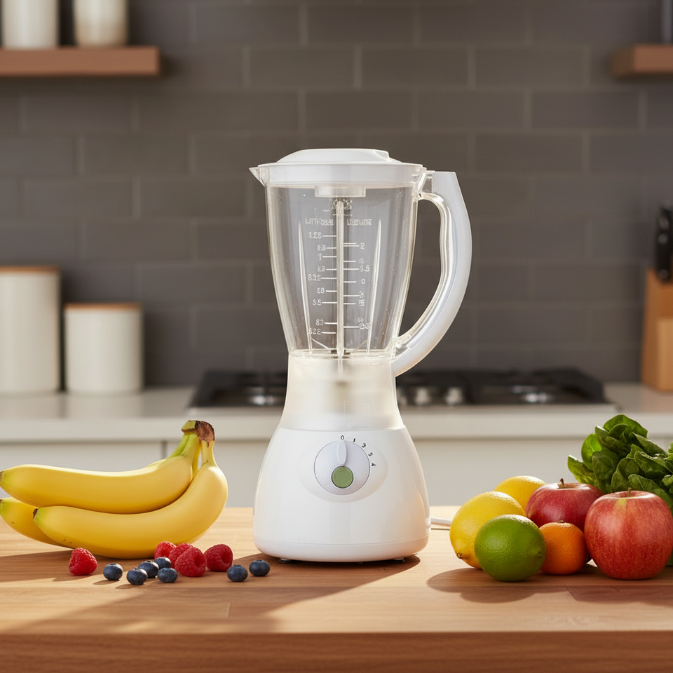 Blender portable JIZYA, capacité de 1,5 L, 4 lames, 3 vitesses, commande par bouton, 200 W, multifonctionnel, utilisation domestique, mixeur à fruits