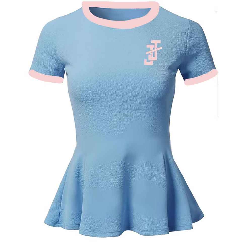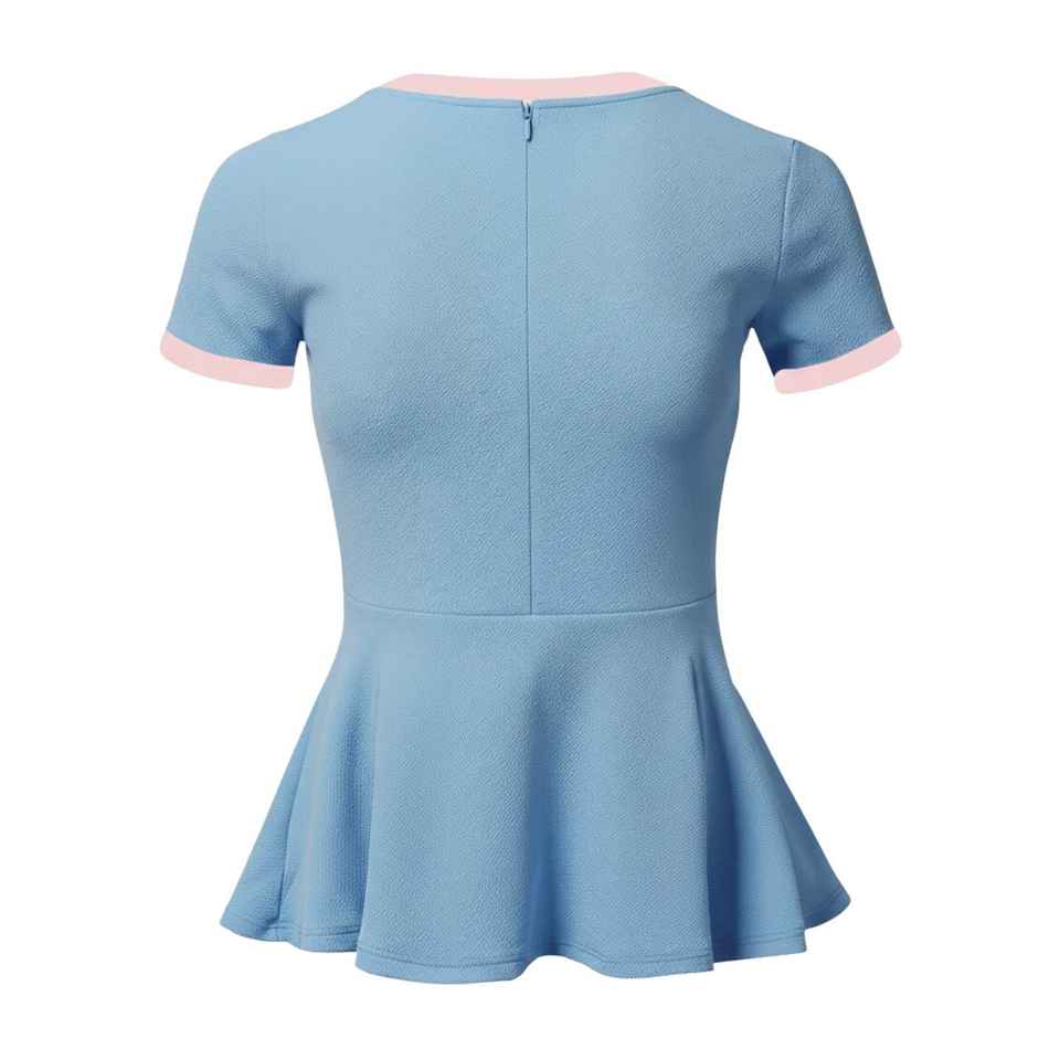 T-shirt Peplum JJ pour femme, manches courtes, bordure contrastante, ourlet évasé, style décontracté, inspiration grecque, en coton