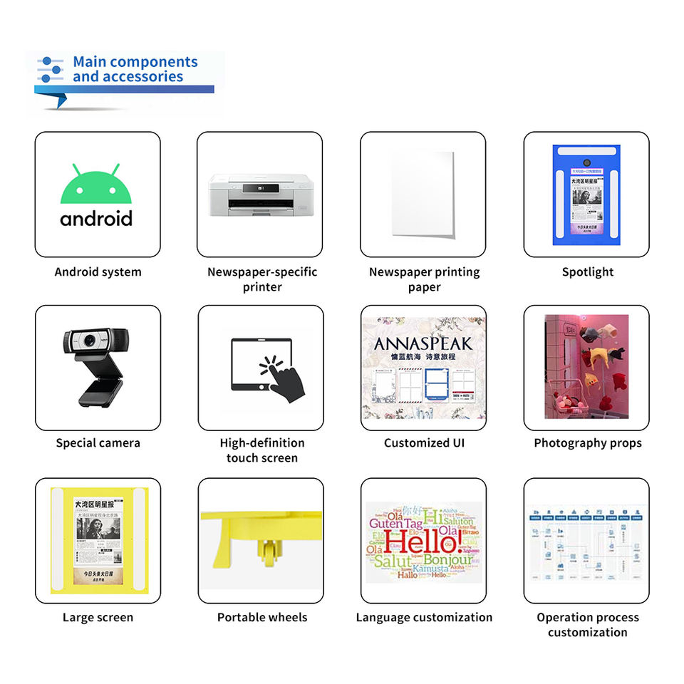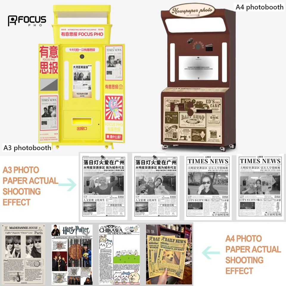 Photomaton JLJ pour journaux rétro avec effet distributeur automatique en libre-service pour photos anciennes de style journal pour centre commercial