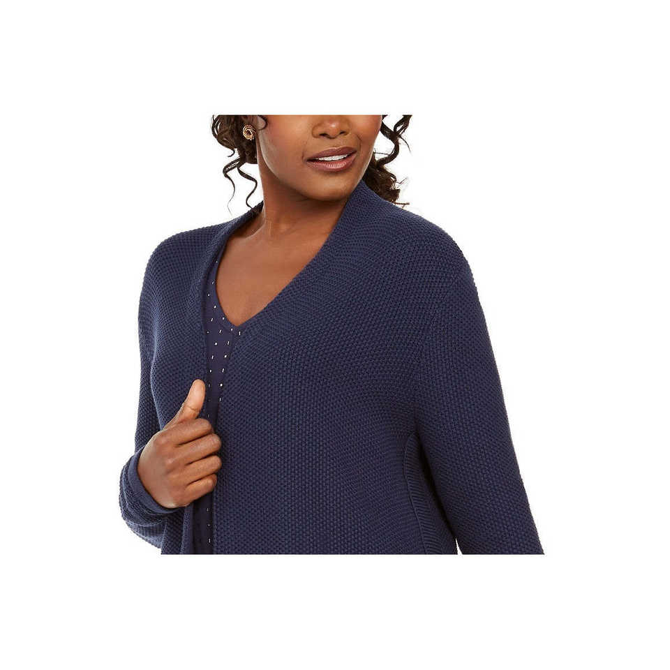 JM Collection Women's Side-Button Open-Front Cardigan in Blue Small Size