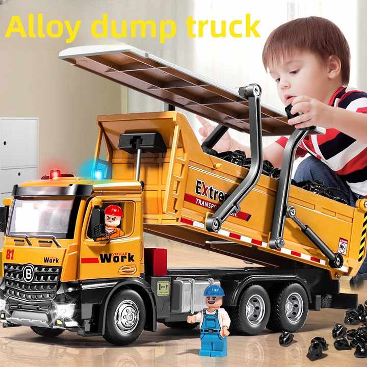 JM Nouveau Grand Camion Benne de Chantier en Plastique pour Garçons et Filles 0-24 Mois, 6 Remorques, Échelle 1:5, Cadeaux