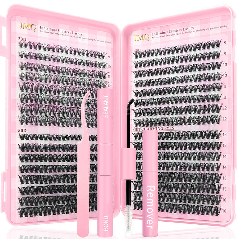 Cils individuels JMQ en bouquets 30D 40D 50D, courbure D, faux cils synthétiques, kit DIY avec dissolvant et applicateur