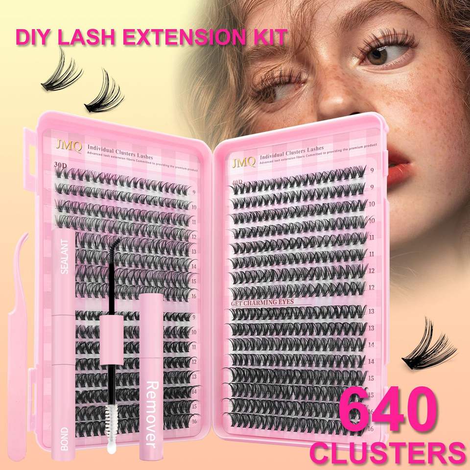 Cils individuels JMQ en grappes 30D 40D 50D en fibres synthétiques, faux cils réutilisables, kit d'extension DIY