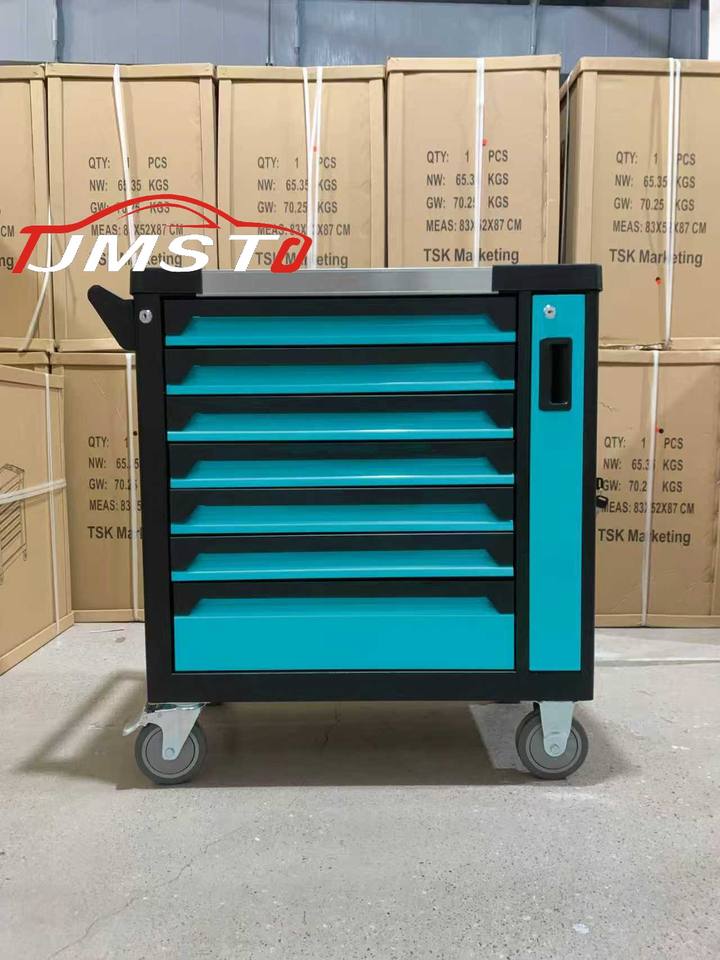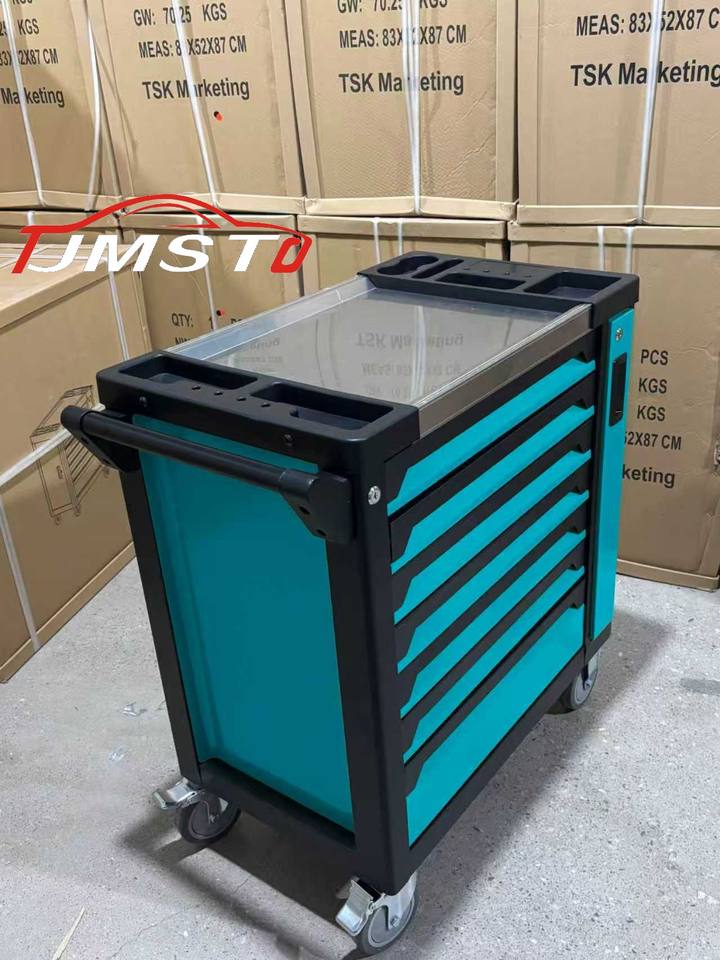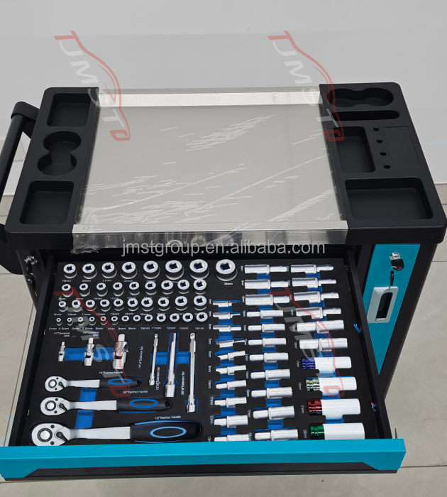 Chariot à outils JMST à 7 tiroirs avec un ensemble complet de 258 outils pour garage et réparations DIY