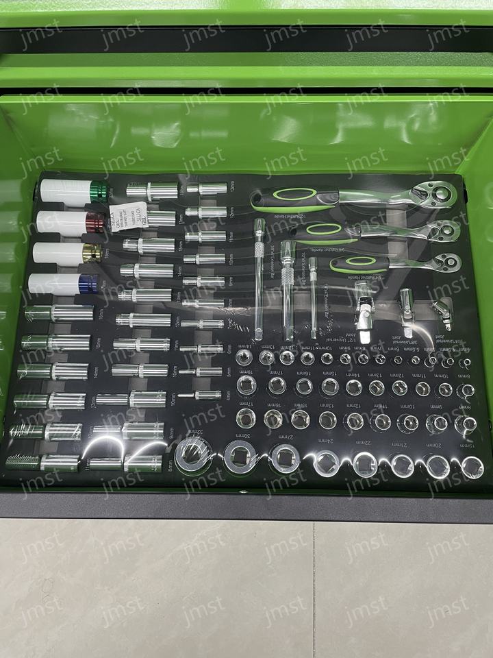 Coffret d'Outils Mécanicien JMST 200 Pièces, Caisse à Outils pour Garage, Armoire à Outils Métallique Robuste avec Chariot d'Atelier et Kits Automobiles