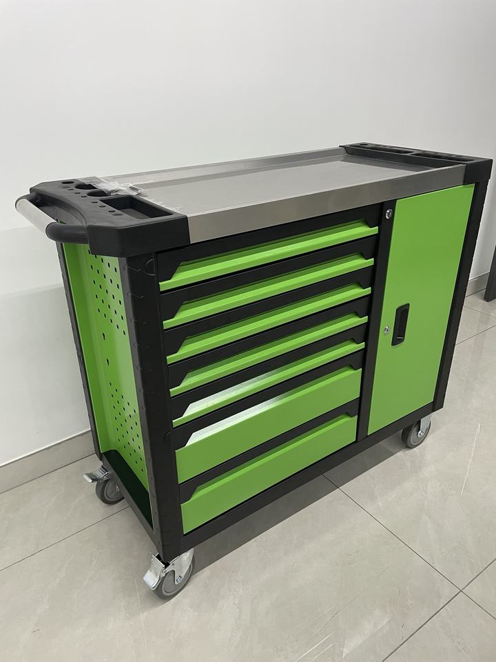 Boîte à outils, Matériel, Plateau, Tiroirs, Roue, Couvercle, Plateau à outils, Serrure à clé, Poignée de poussée, Doublure de tiroir, Planche à clous, BANDE DE PUISSANCE