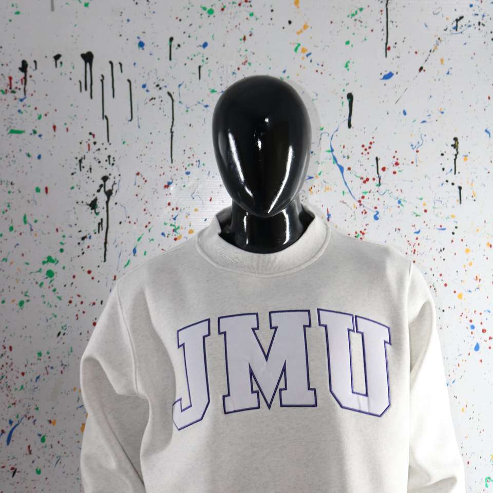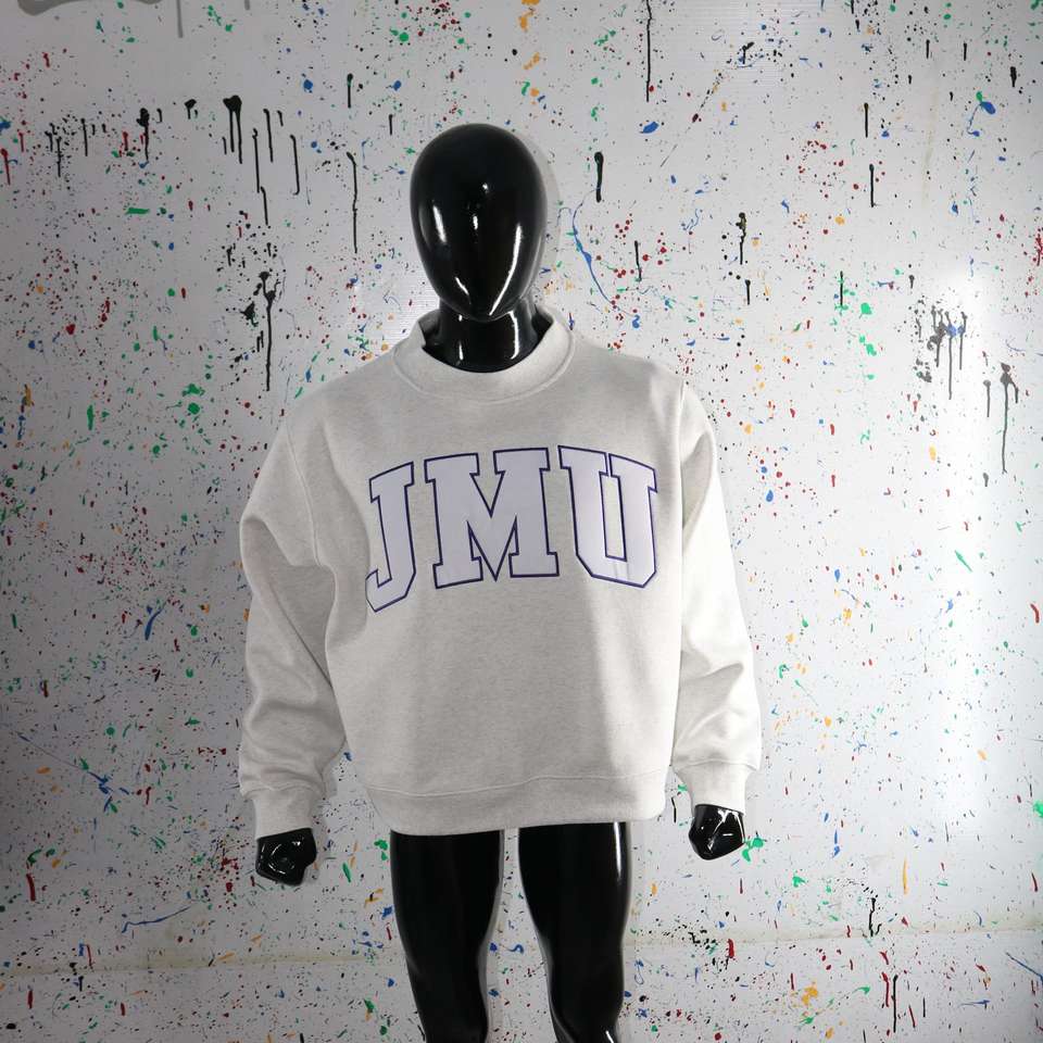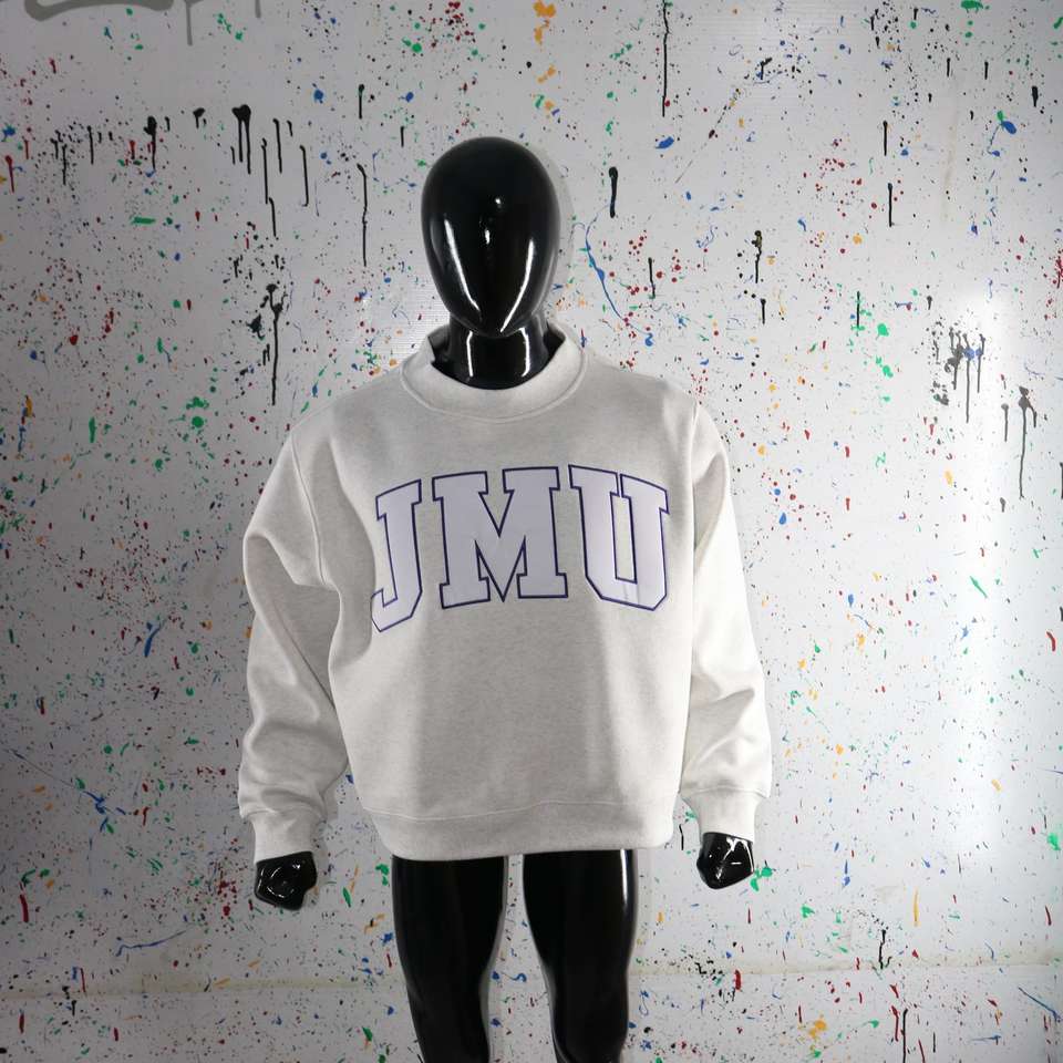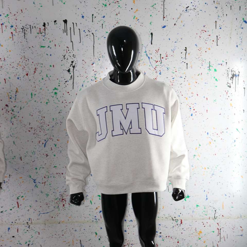Sweat-shirt à col montant JMU ASH GREY 100% coton avec broderie appliquée blanche, col large, CLUSH SPORTS