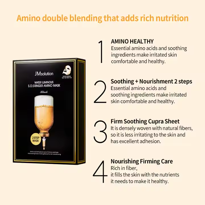 JMsolution Corée Vente Chaude Eau Lumineux S.O.S Ringer Amino Mask Plus Sheet Face Skincare 1 Unité = 10 Pièces Nouvelle Arrivée