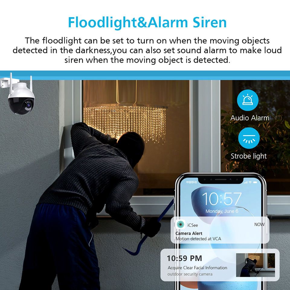 JOAREON Caméra de Sécurité Icsee Wi-Fi Extérieure Étanche PTZ UHD 5MP avec Support NVR pour Vidéosurveillance