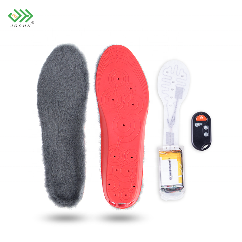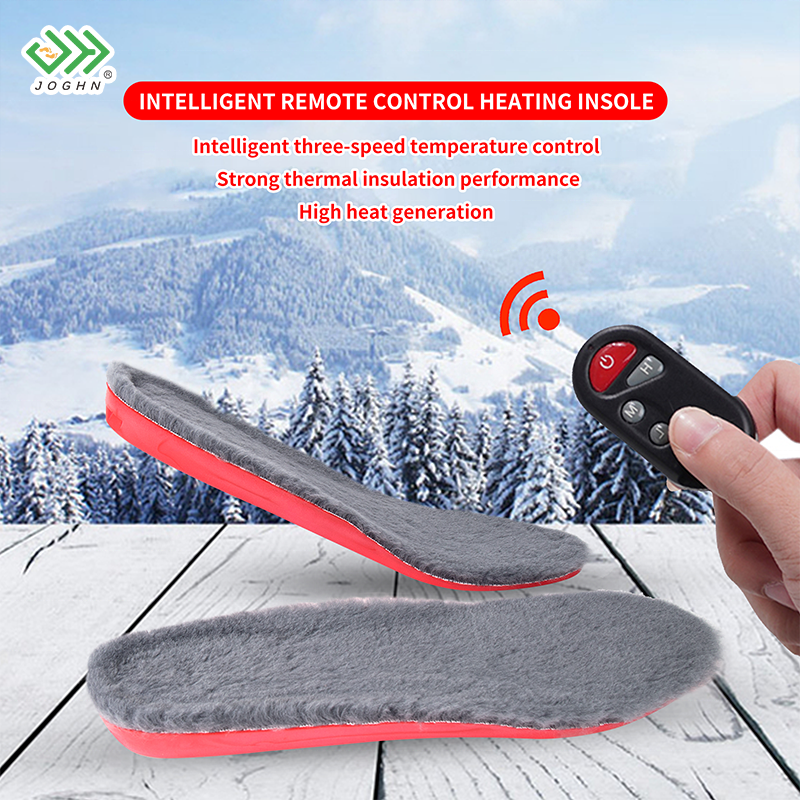 JOGHN Semelle intérieure chauffante électrique USB en laine pour l'extérieur Semelle chauffante électrique rechargeable avec télécommande Batterie rechargeable
