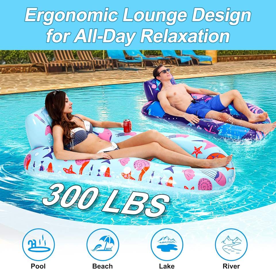 JOSEN Transat gonflable moderne et robuste pour piscine avec porte-gobelet et dossier/repose-pieds pour adultes - Utilisation plage et lac