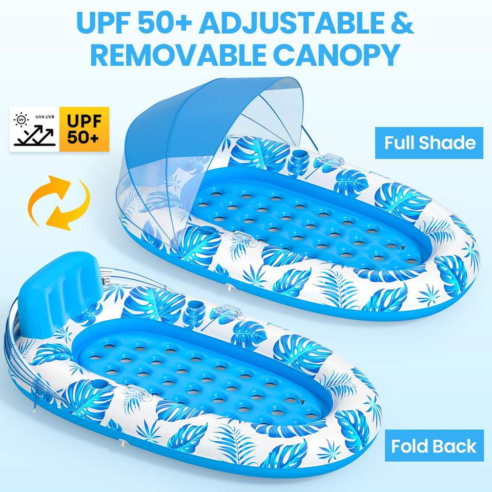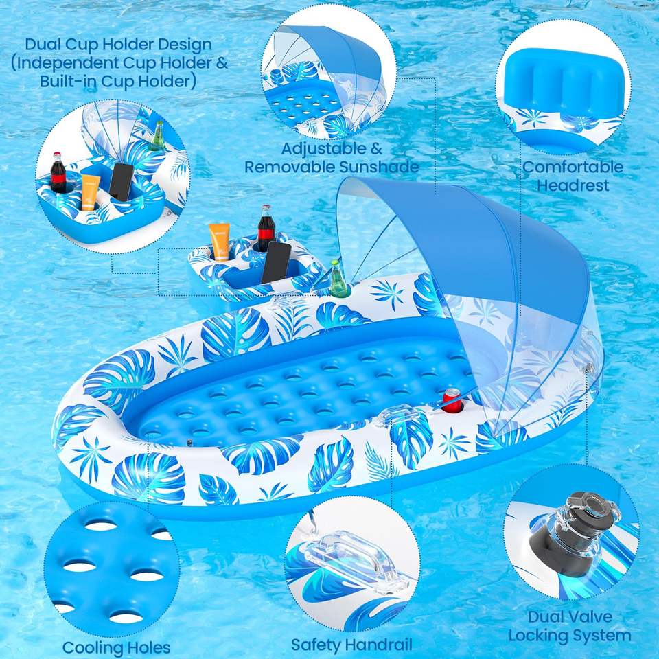JOSEN Radeau Flottant en PVC pour Adultes avec Pare-Soleil, Hamac de Piscine, Porte-Gobelet Portable - Conception Épaissie