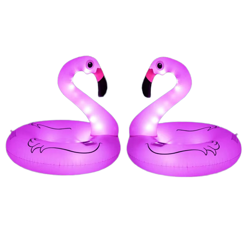 JOSEN Flotteur gonflable en PVC épais, lumineux à LED solaire, flamant rose/cygne, octogonal, pour adulte