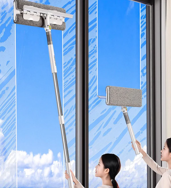 JOYBOS – Kit d'outils de nettoyage de vitres rotatif 2 en 1, avec rallonge télescopique, équipement de lavage de vitres