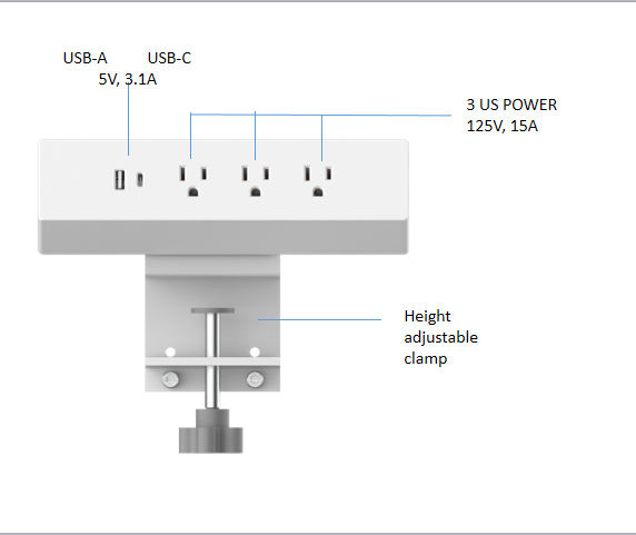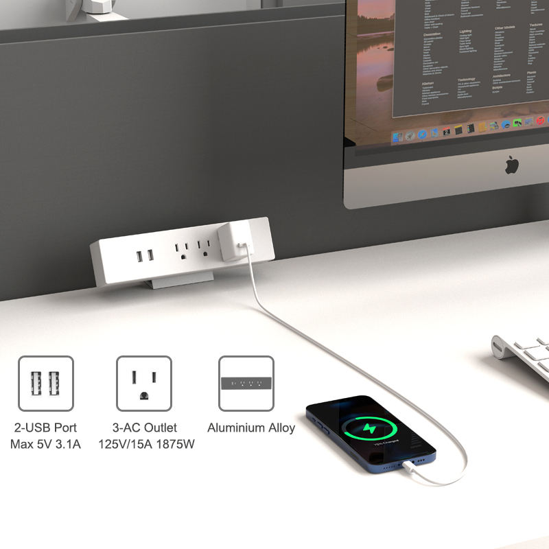 JOYE Prise de bureau pour bureau avec ports USB Clip de bureau multi-prises Prise de bureau Pince à 3 prises Multiprise