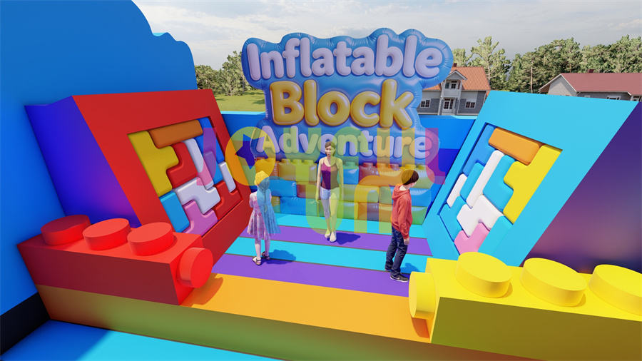 Parc gonflable JOYFUL FUN sur le thème des jeux classiques, aire de jeux gonflable extérieure pour enfants