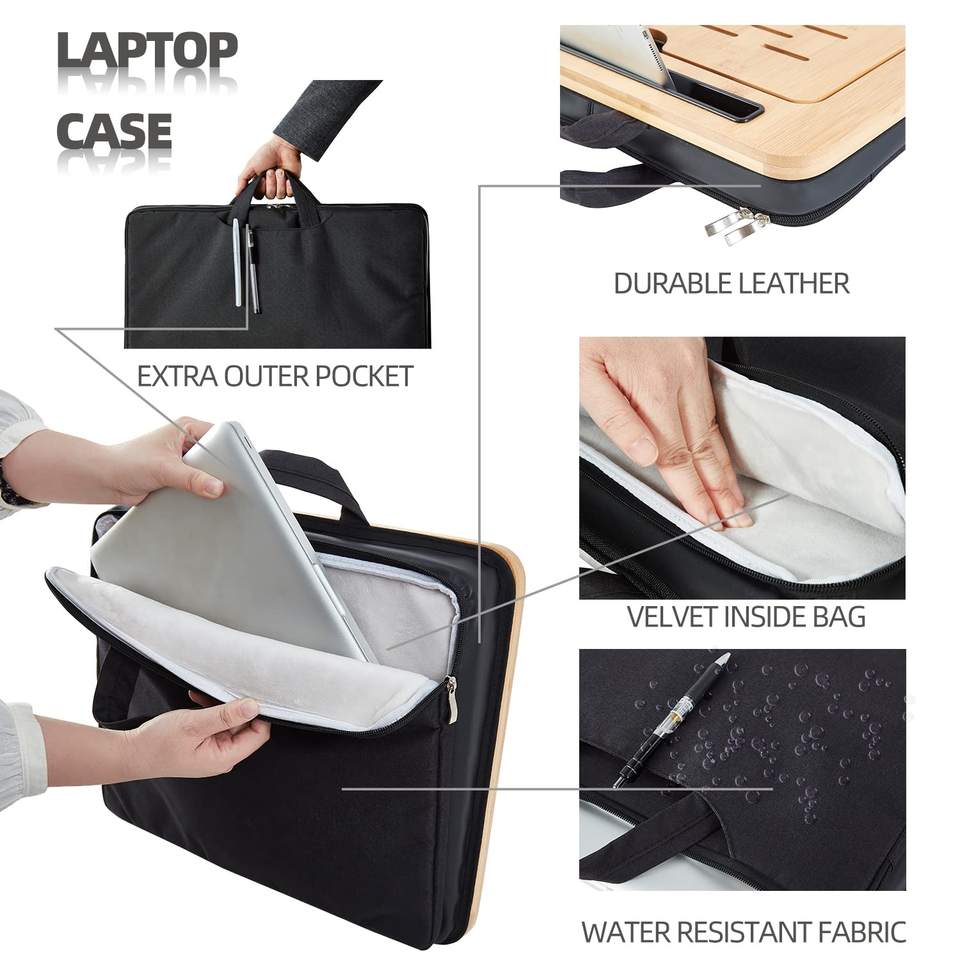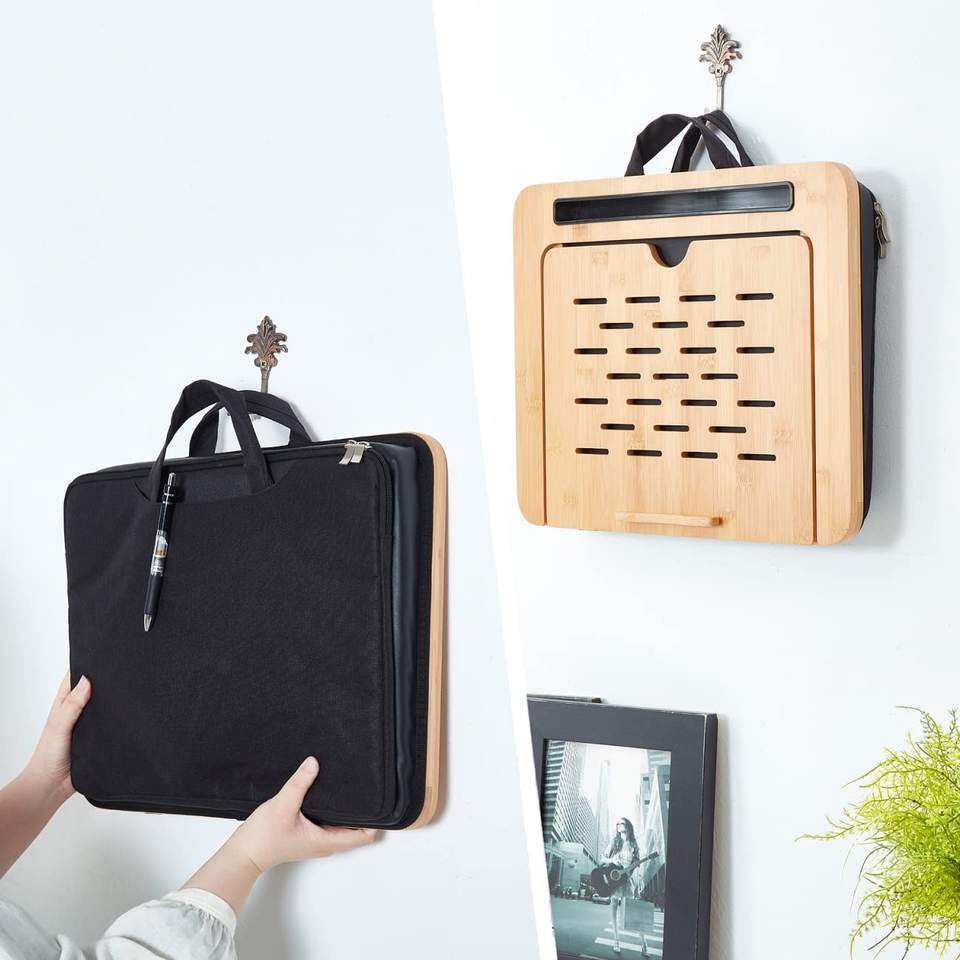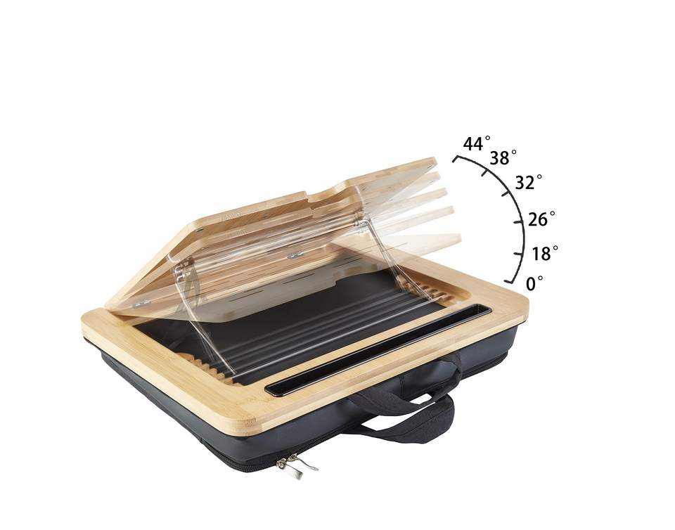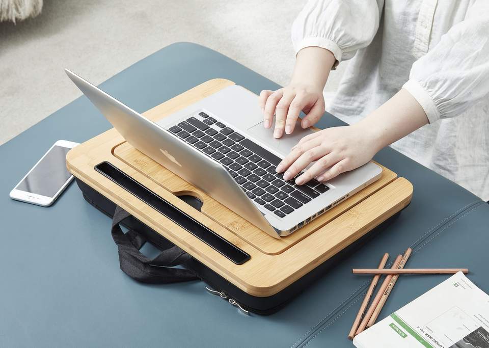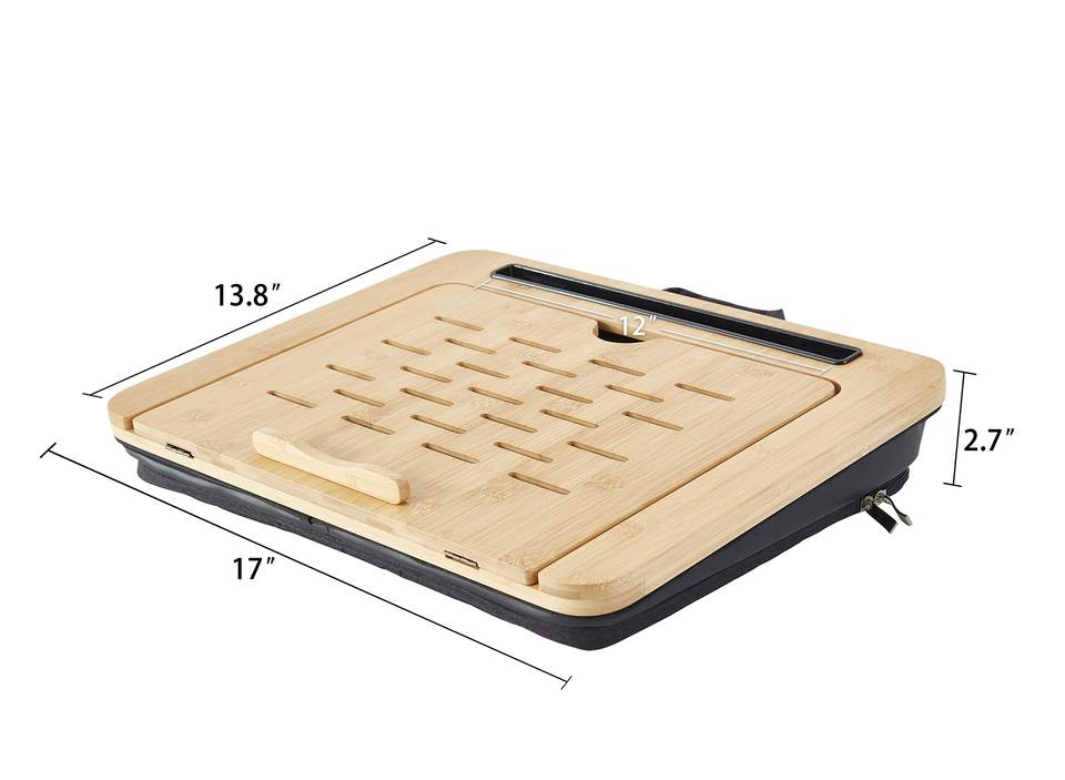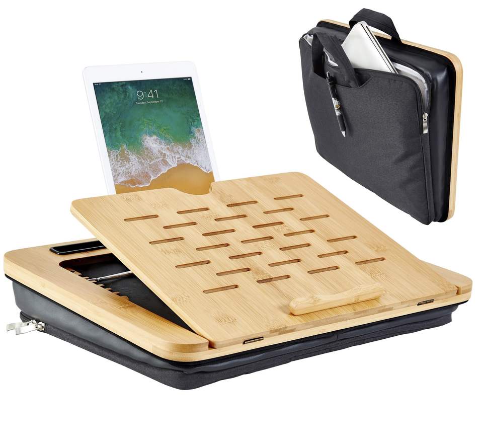 JQ Adjustable Angle Bamboo Laptop Stand Table Lap Desk Pillow with Cushion and Sleeve Case for Bed Sofa Car