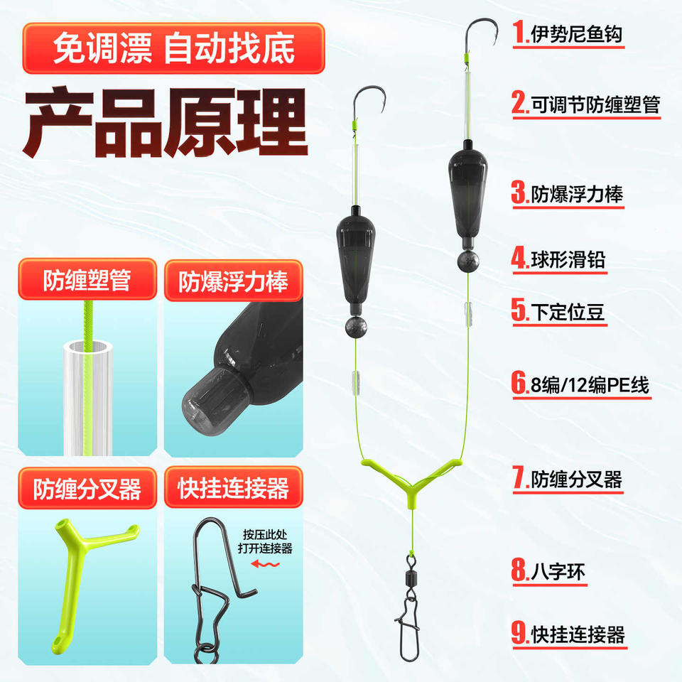 JQWIUE1 Monture à double hameçon inversée pour la pêche à la carpe en eaux douces, hameçons barbelés, conception anti-accrocs