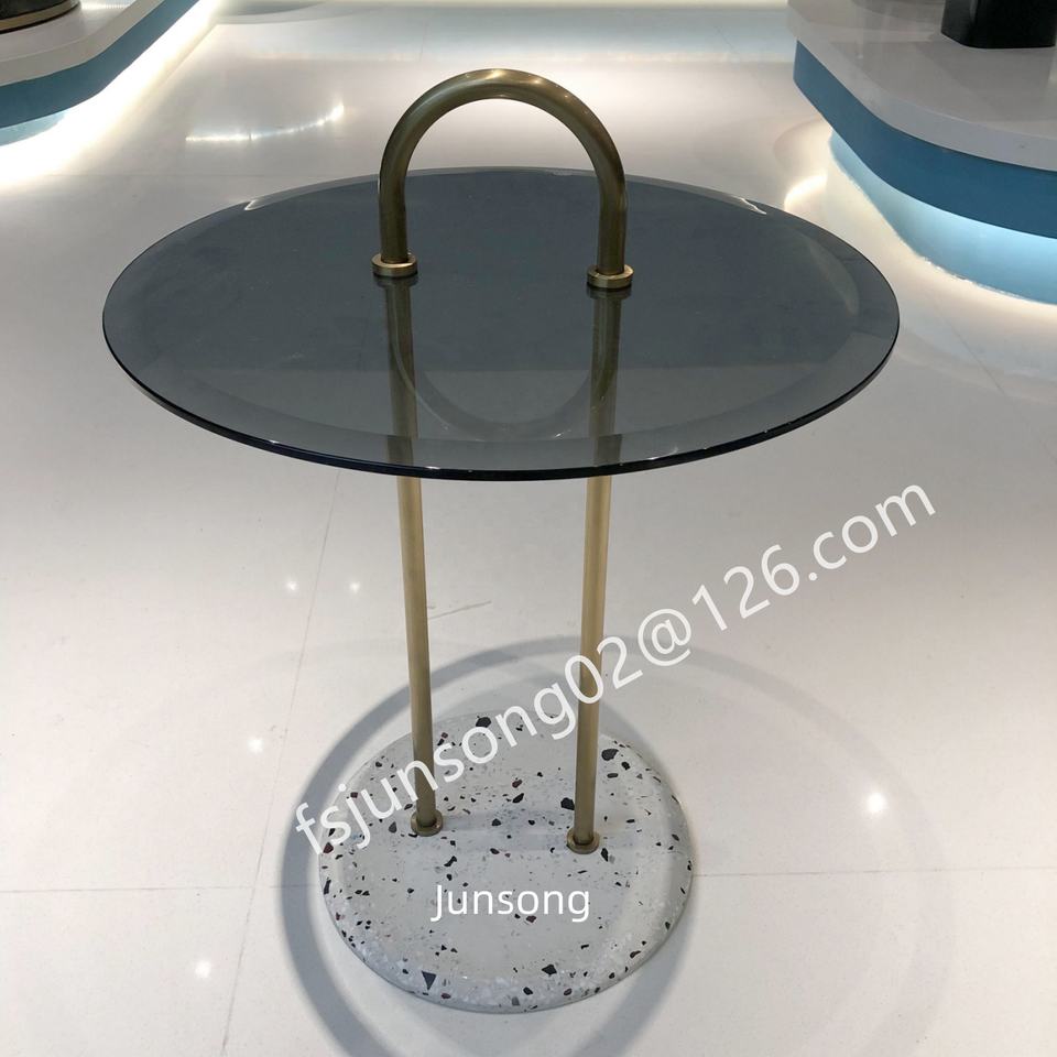JS A54 table basse moderne en terrazzo table d'appoint de canapé en verre gris avec baignoire tulipe SS en forme de U noire meubles de salon haut de gamme