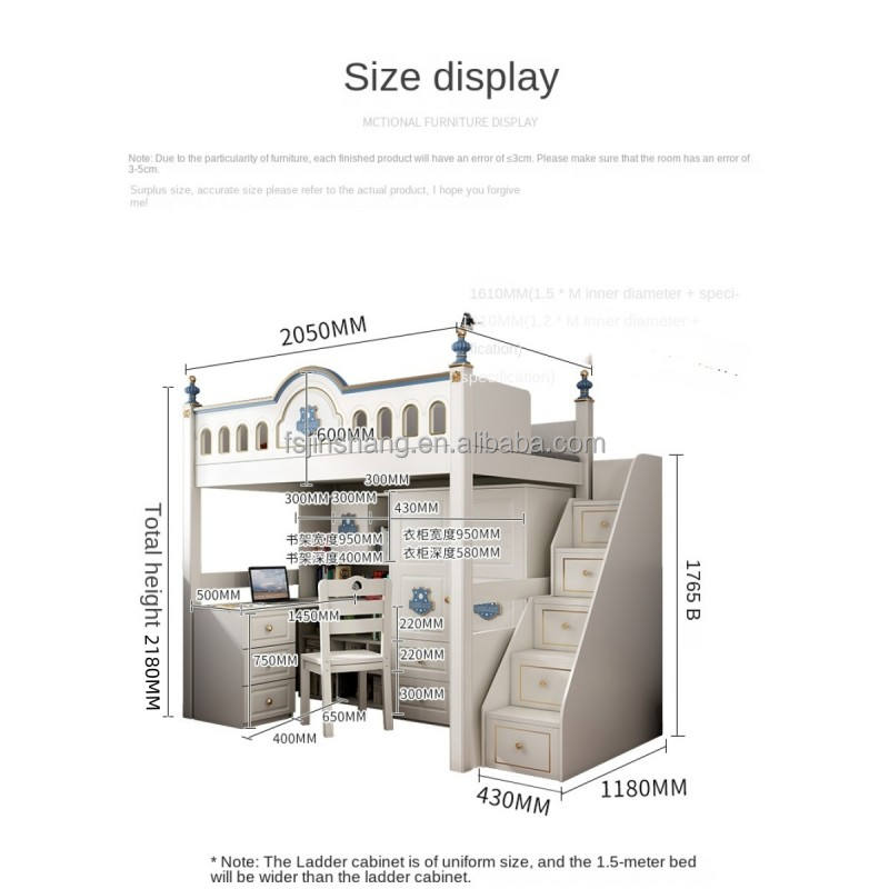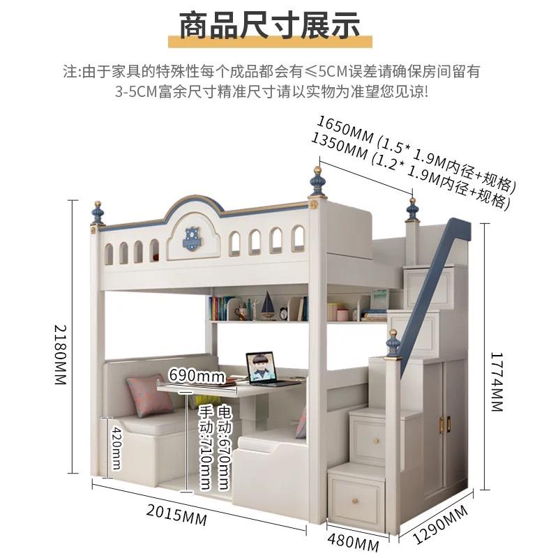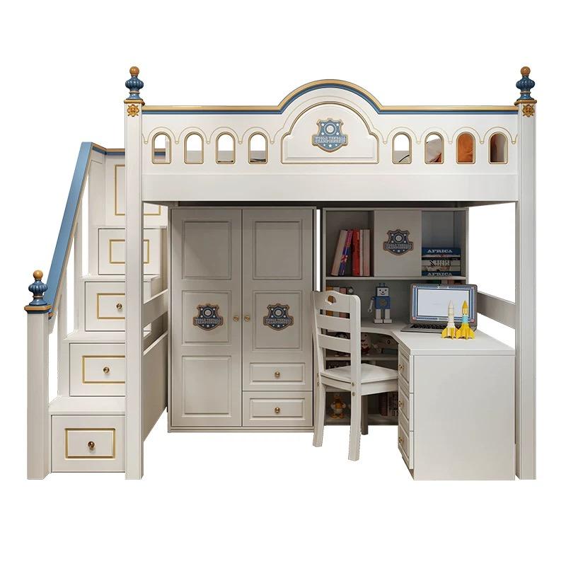 JS FURNITURE Lit mezzanine moderne pour enfants avec toboggan et escalier, mobilier de chambre en bois pour appartement et hôtel, design Montessori