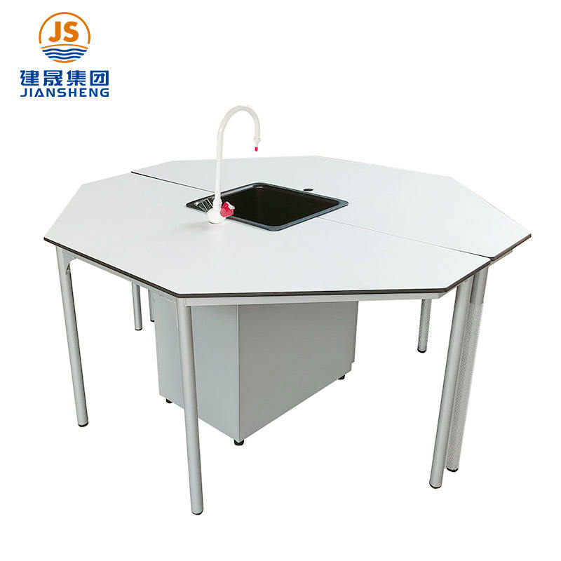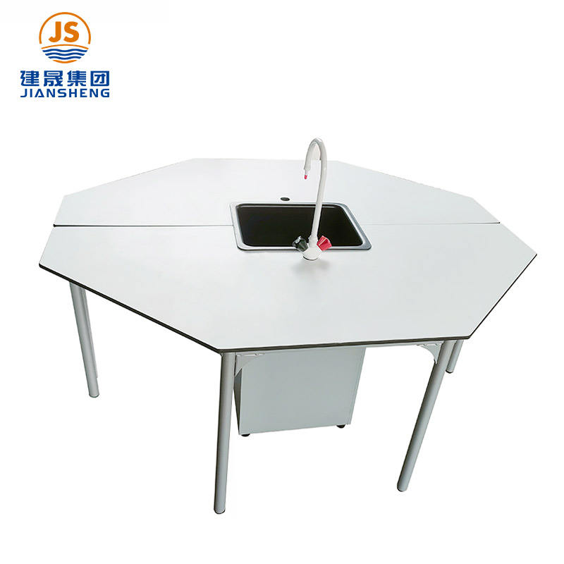 Meubles de laboratoire de conception moderne de haute qualité JS, table de laboratoire d'étude de chimie, de physique et de biologie avec découpe pour évier pour une utilisation scolaire