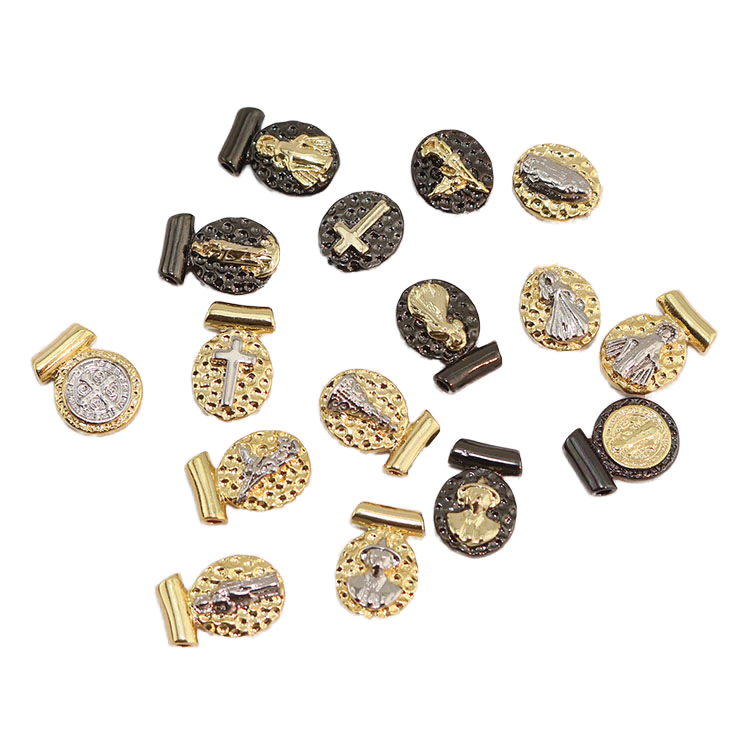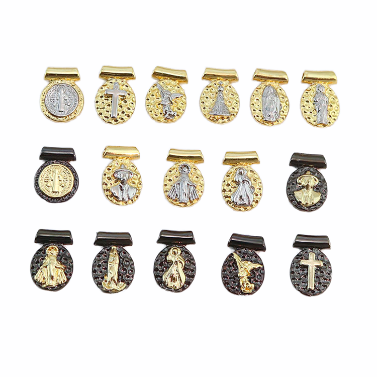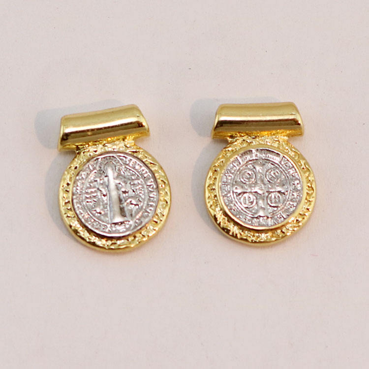 JS1801 Mini breloque rustique en métal mélangé or et argent pour femme miraculeuse médaille saint Benoît martelée médaillon pour bijoux religieux