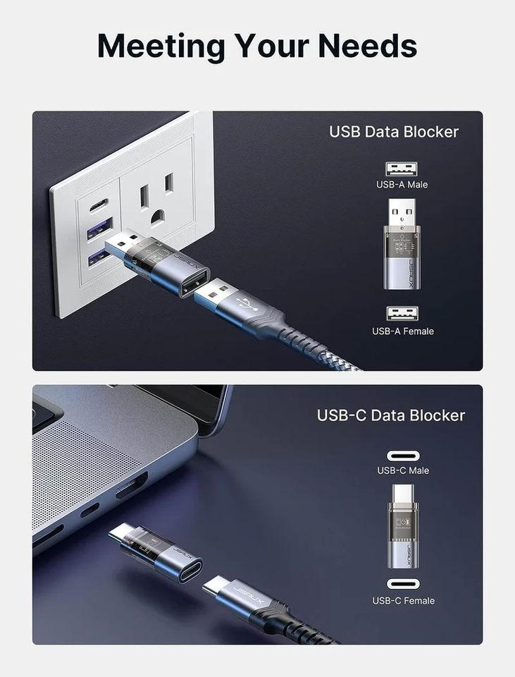 Bloqueur de données USB JSAUX et bloqueur de données USB-C