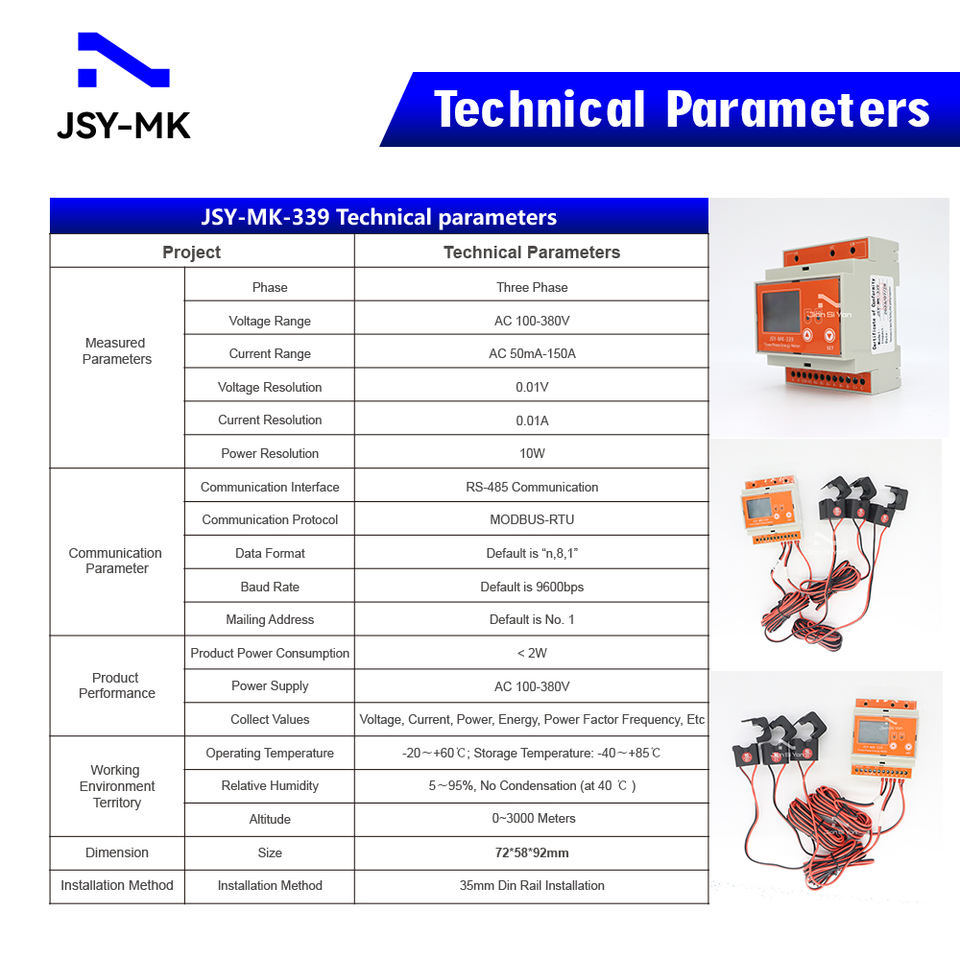 Compteur d'énergie numérique JSY-MK-339 150A 3P3W Din Rail 220V kilowattheure Watt & Kwh moniteur wattmètre de puissance électrique