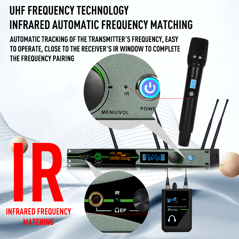 Système de monitoring stéréo JT22, microphone dynamique sans fil UHF 2 canaux, XLR, réduction de bruit, portable, pour scène
