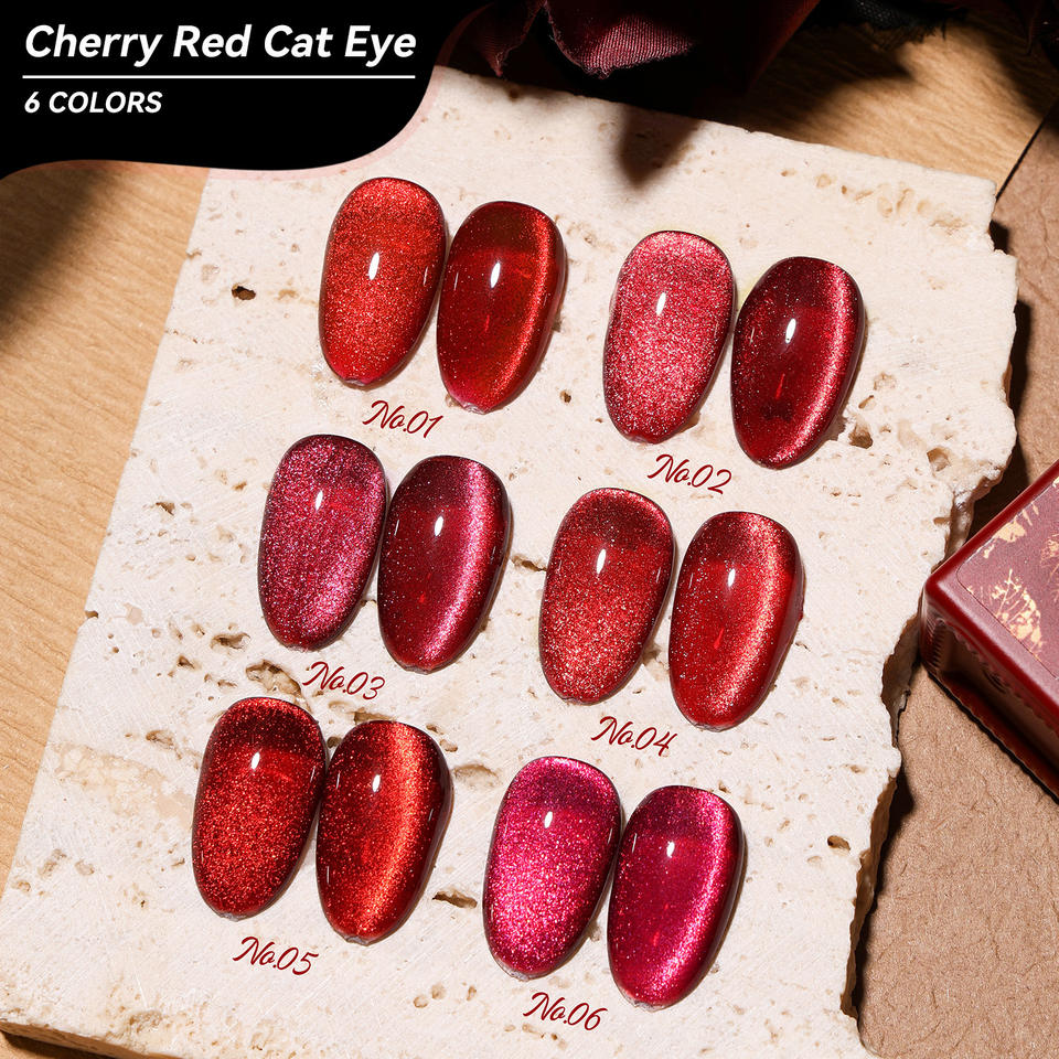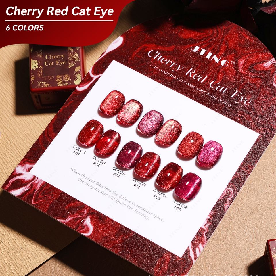 JTING Explosions Cherry Ruby Cat's Eye Vernis à ongles 6 couleurs Nouvel An Rouge Fine Flash Blanc Vin Rouge LED 30s Cure Time
