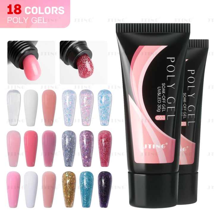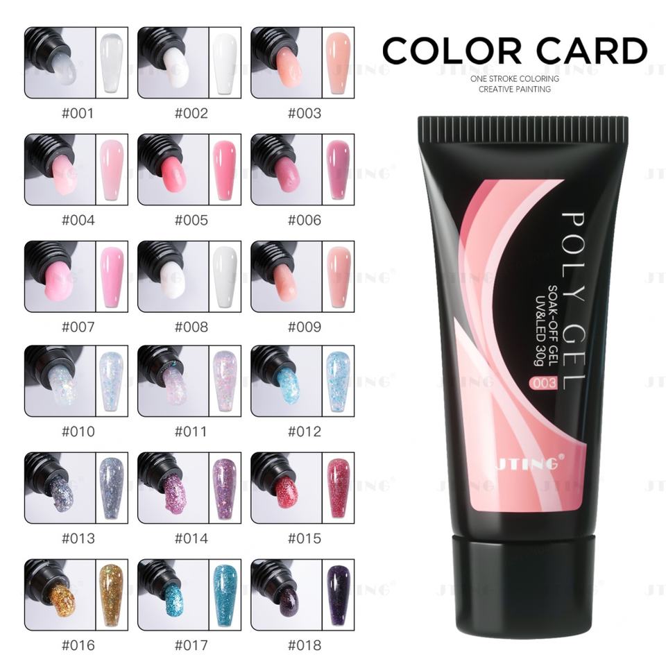 JTING Kit de Polygel pour Ongles Haute Qualité, Longue Durée, Extension Rapide, 18 Couleurs, Tube 30ml, OEM Marque Privée, Polygel Robuste Pailleté