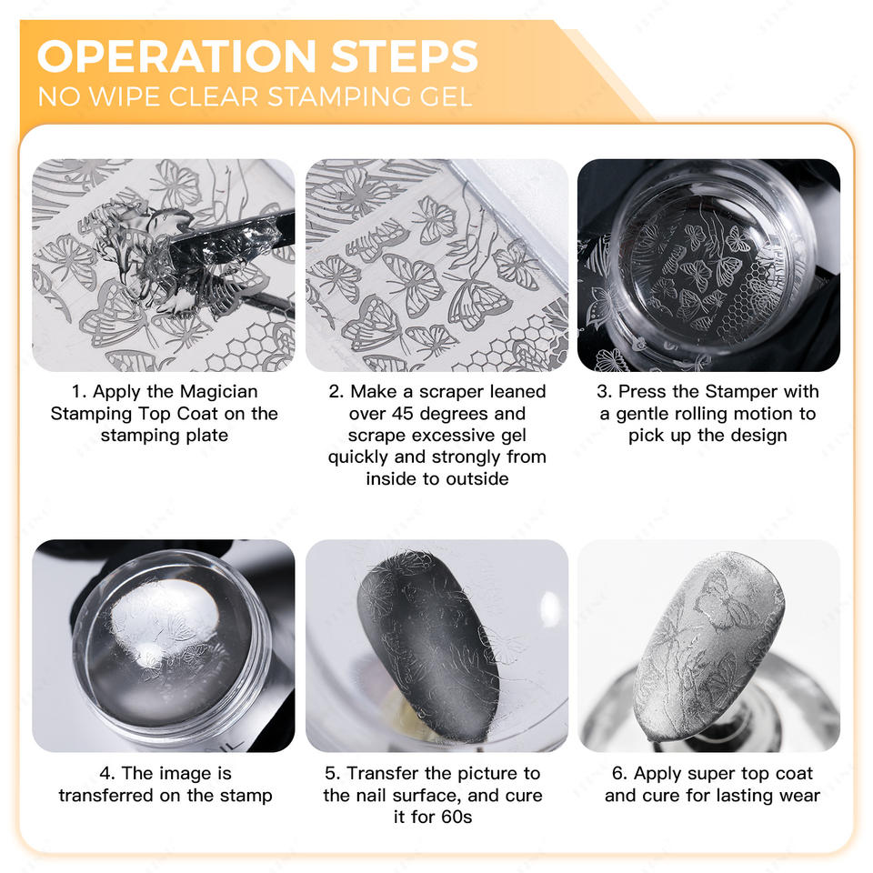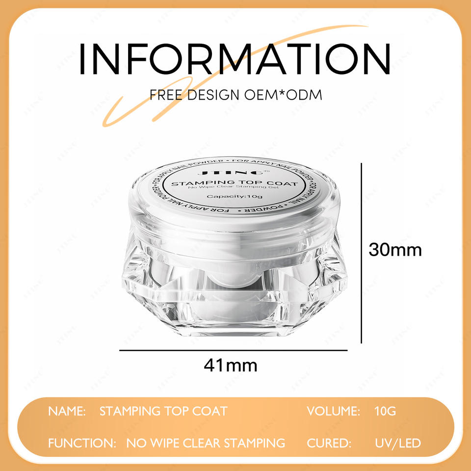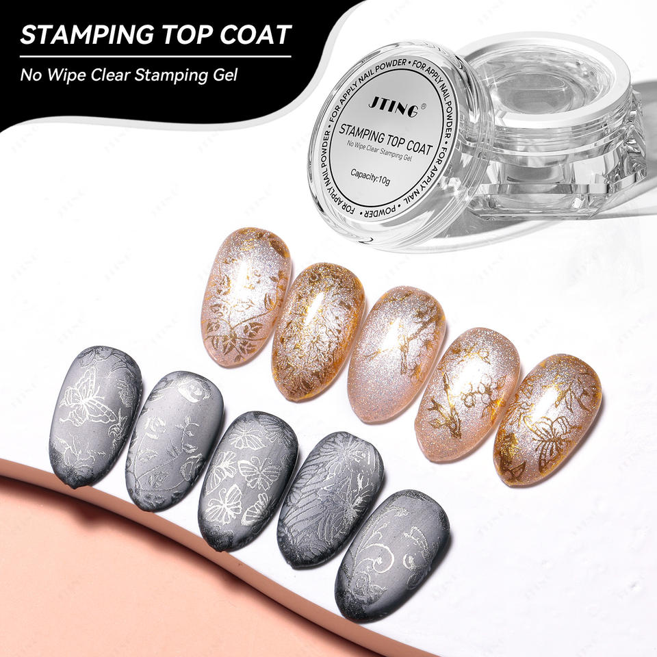 JTING Gel top coat stamping transparent 10 g no‑wipe UV‑LED pour poudre miroir, sans solvant ni TOL/HCHO pour nail art