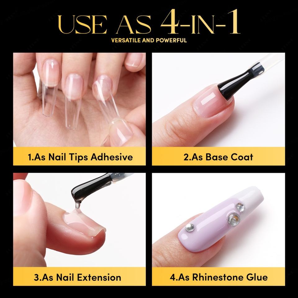 JTING Nouveau Gel de Construction 4-en-1 Transparent Amélioré, Base Coat, Gel X, Colle Gel, Vernis Gel Sans TPO/HEMA, OEM