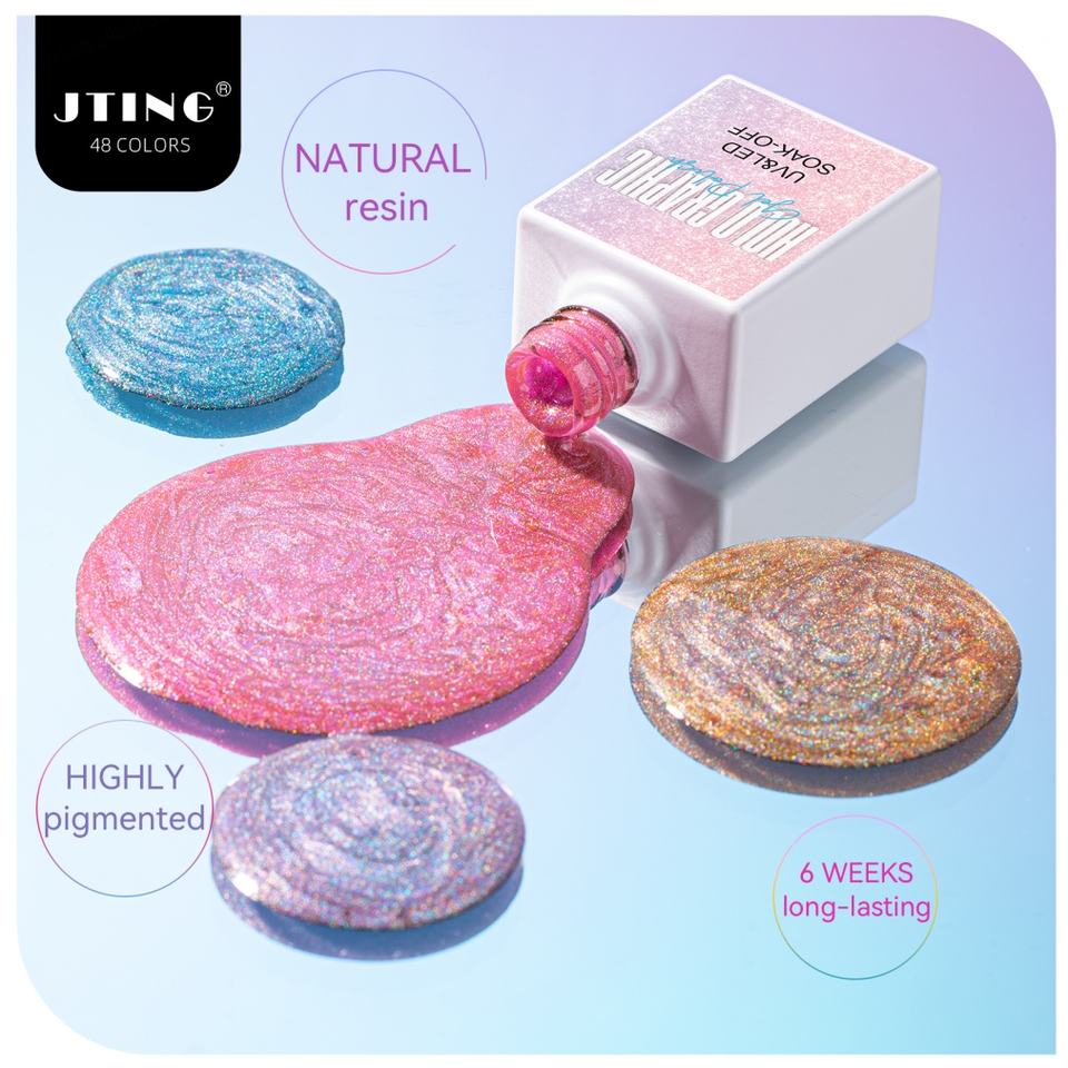 JTING Nouvelle Collection Laser Holographique 48 Couleurs – Coffret de Vernis à Ongles Gel Unique avec Livre de Couleurs Gratuit – Marque Privée OEM