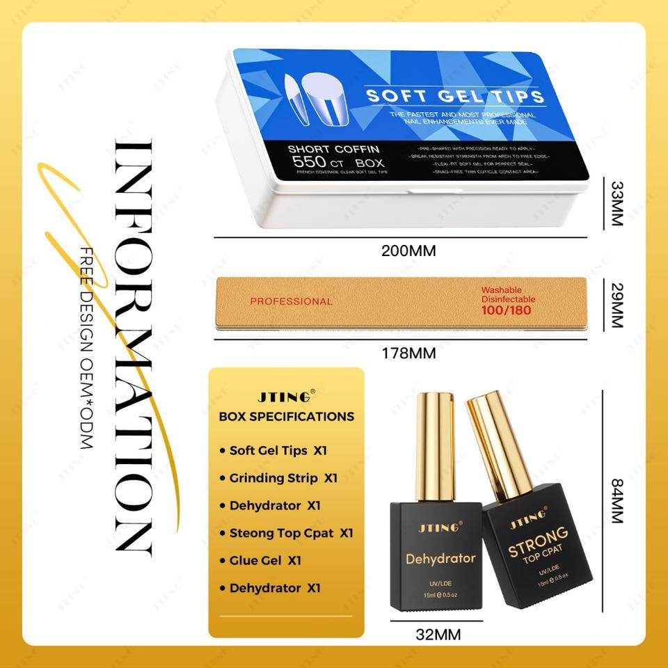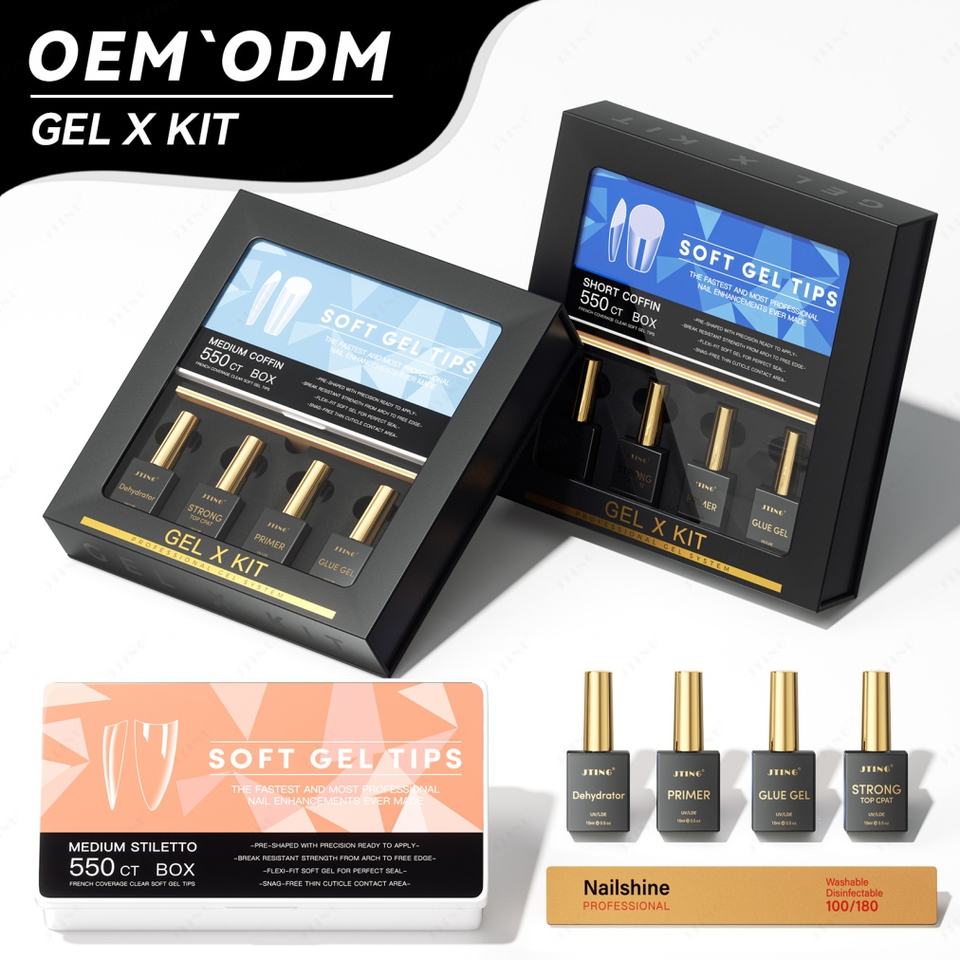 JTING Nouveau Kit Gel X OEM Vente en Gros Personnalisation Gratuite Vernis Gel Déshydratant Primer Colle Top Coat avec Lime à Ongles Boîte de Capsules en Gel Souple