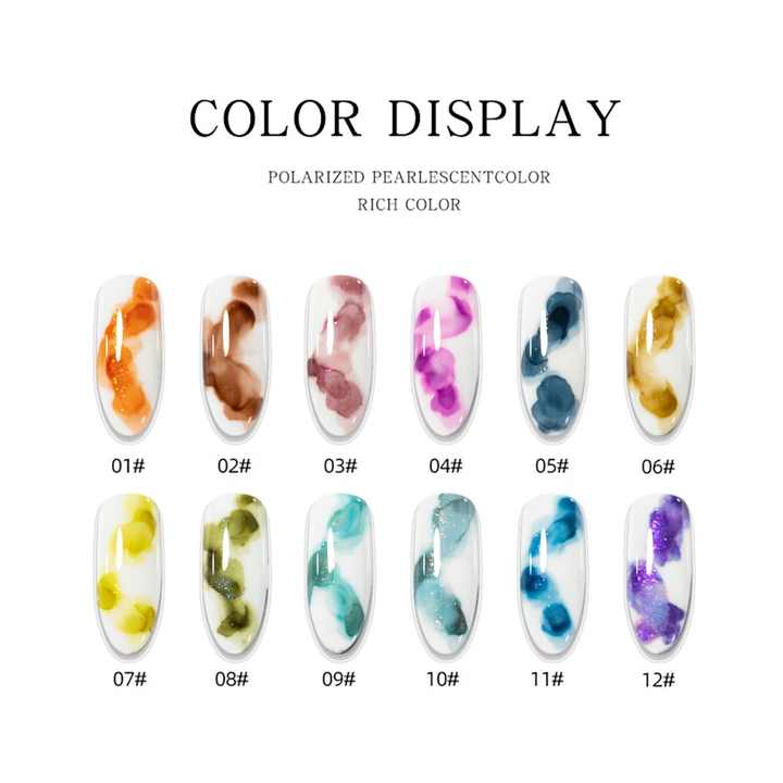 JTING OEM, étiquette privée disponible, vente chaude, design d'art des ongles, 12 couleurs, gel UV liquide chatoyant effet marbre, ensemble de vernis à ongles