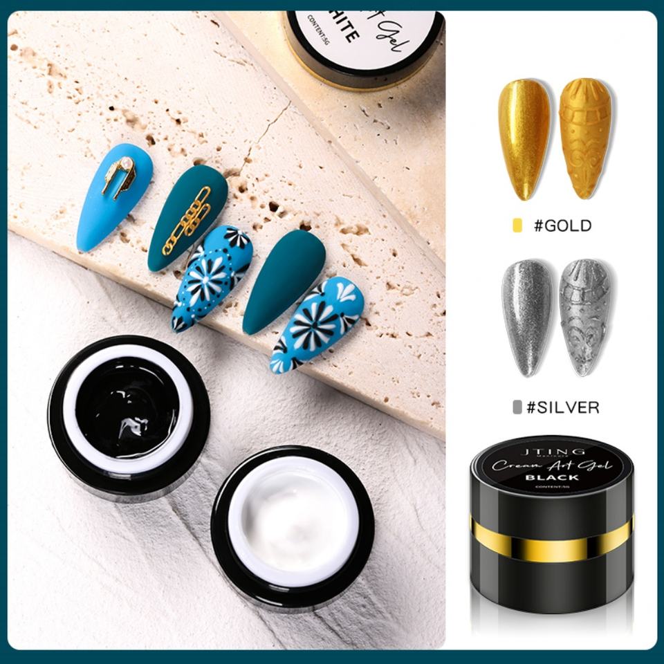 JTING Gel UV/LED pour ongles, 4 couleurs, pour peinture en relief créative et coloration en une seule couche, colle gaufrée longue durée, OEM, marque privée
