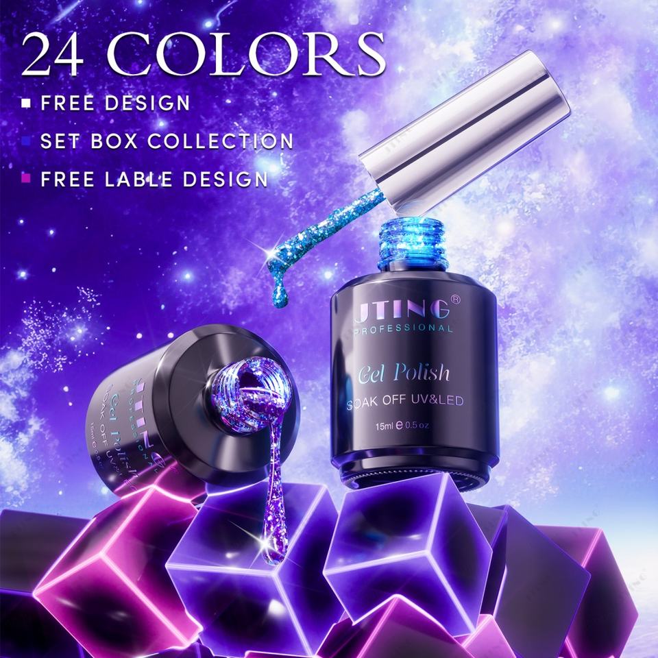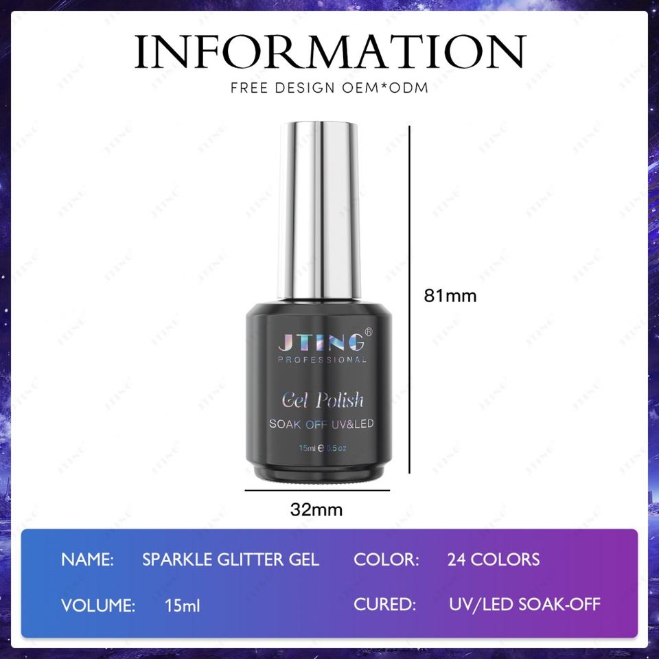 JTING Collection de Gels Scintillants 24 Couleurs, Design Original Amélioré, Boîte de Fournitures pour Ongles OEM, Vernis à Ongles Super Éclatant