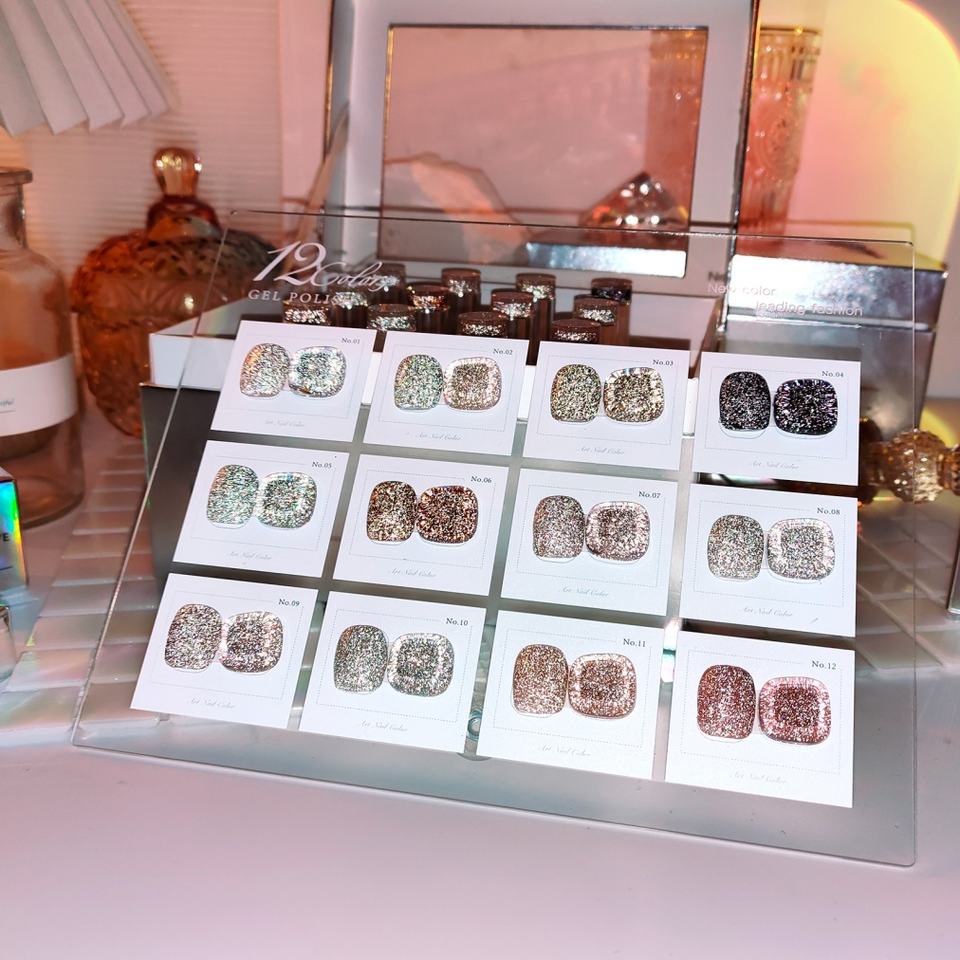 JTING – Collection de vernis gel réfléchissants disco 12 couleurs personnalisables – Boîte de présentation OEM – Créez votre propre logo de marque d'ongles