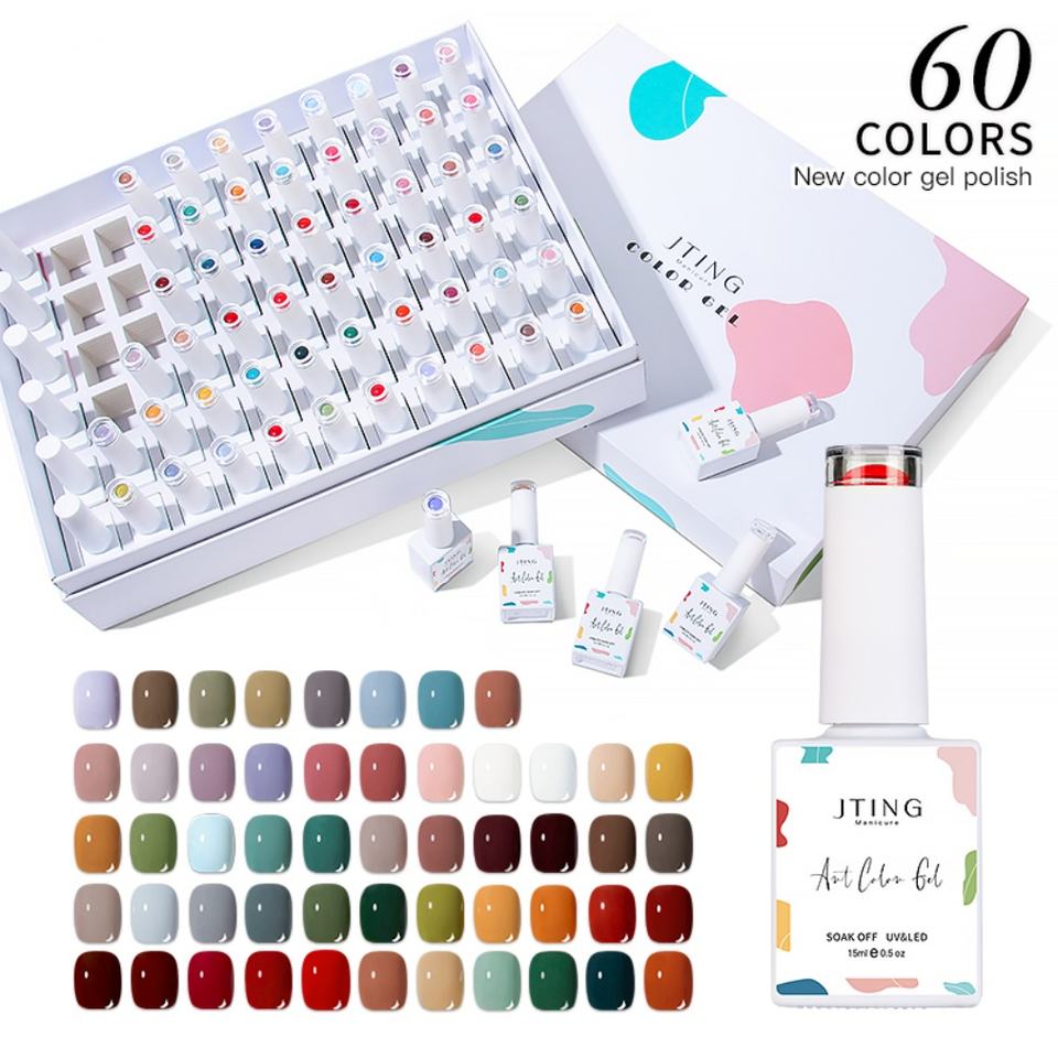 JTING Professionnel OEM/ODM, conception personnalisée, marque privée, ensemble de vernis à ongles en gel UV 60 couleurs 15ml avec boîte pour fournitures de salon de manucure