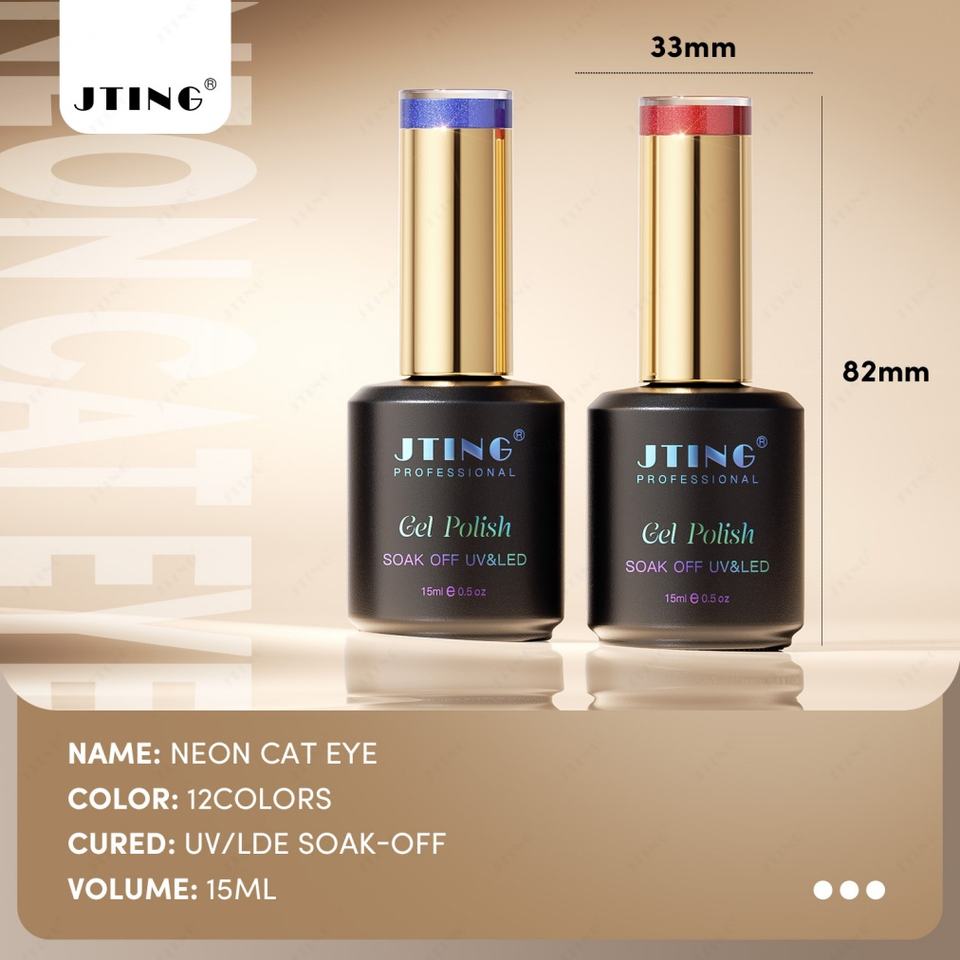 JTING Collection de vernis à ongles gel effet œil de chat néon 12 couleurs au design unique 15ml Vernis gel œil de chat sans TPO sans HEMA OEM ODM Gel néon