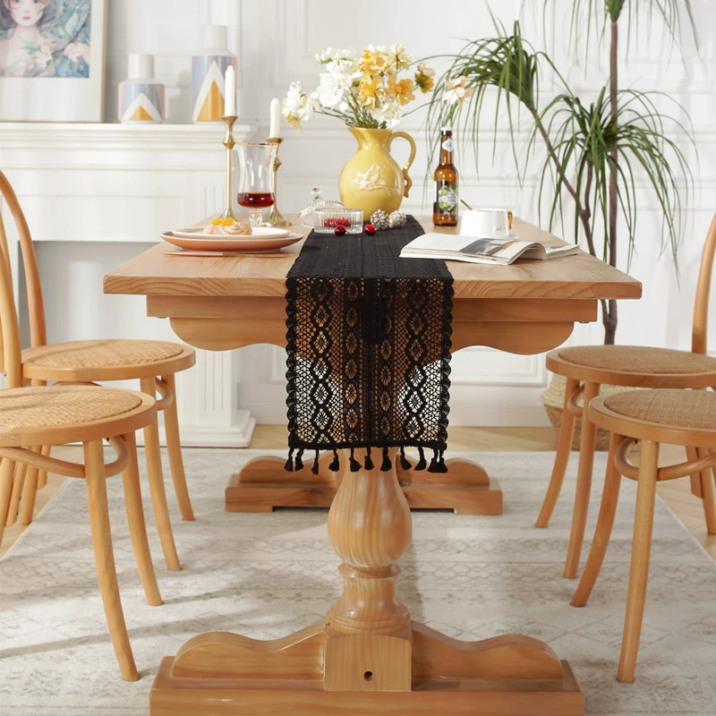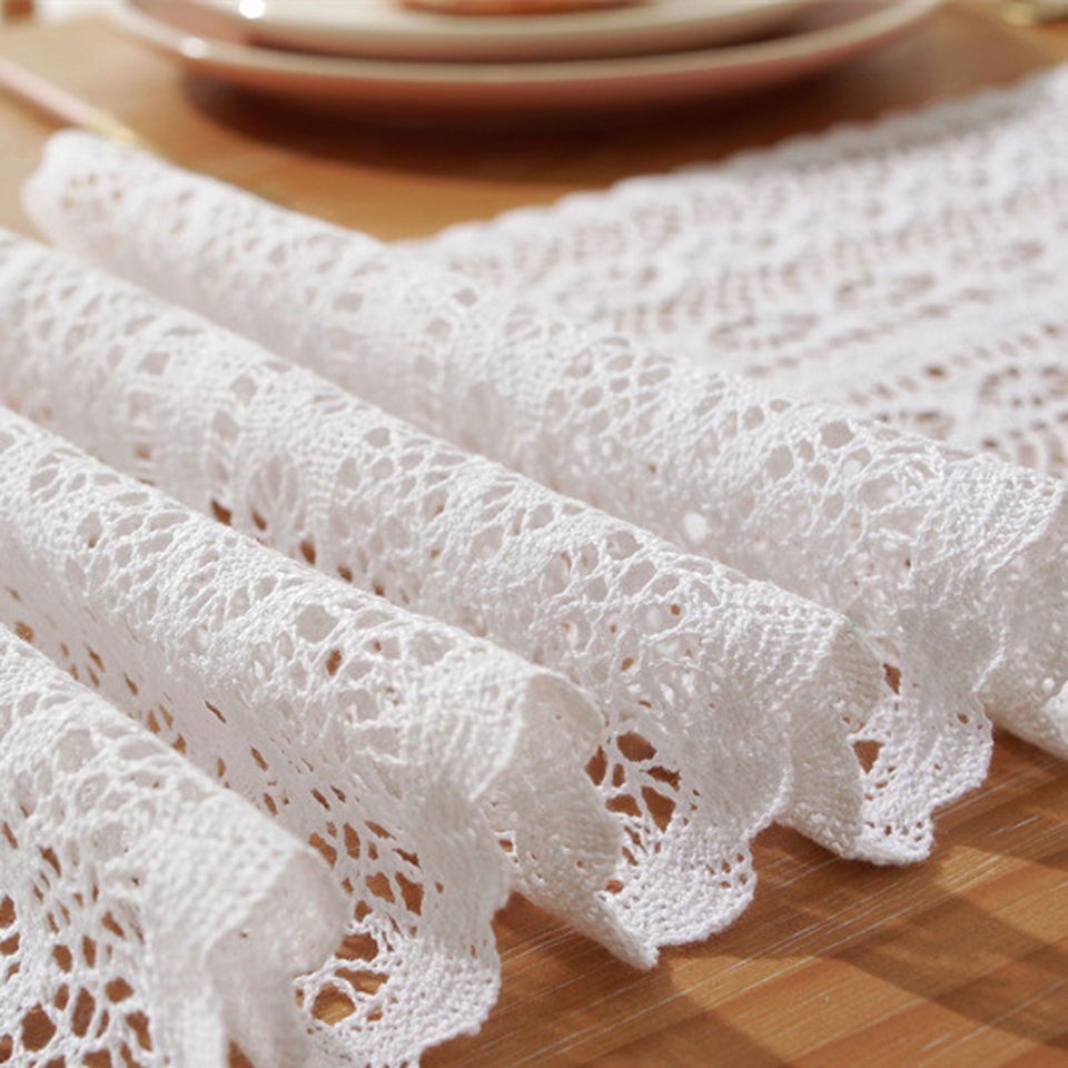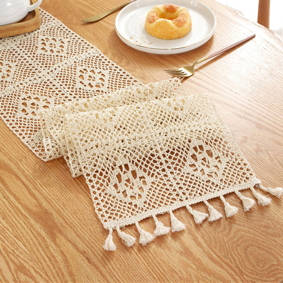 Chemins de table en dentelle ivoire JU-903 avec glands pour décorations romantiques de fête de mariage