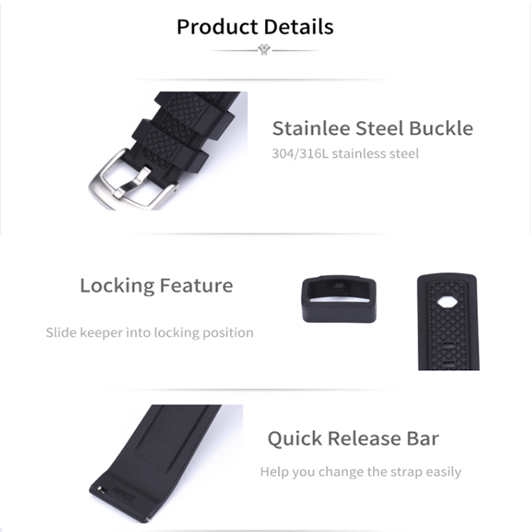 JUELONG Summit Bracelet de montre en caoutchouc fluoré 20mm 22mm Dive Quick Release FKM Bracelet de montre en caoutchouc